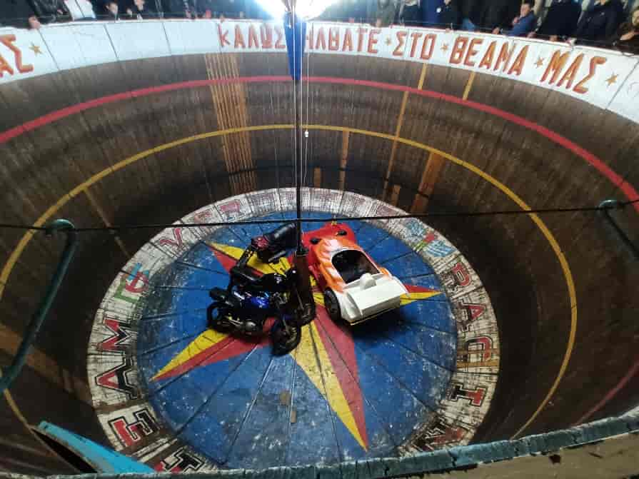 Ο Γύρος του Θανάτου, η δυνατή μουσική, ο χορός, ο ήχος της εξάτμισης και η μυρωδιά από το καμένο ελαστικό συνθέτουν μια μοναδική ατμόσφαιρα που θα αποζημιώσει και τον πιο απαιτητικό επισκέπτη.