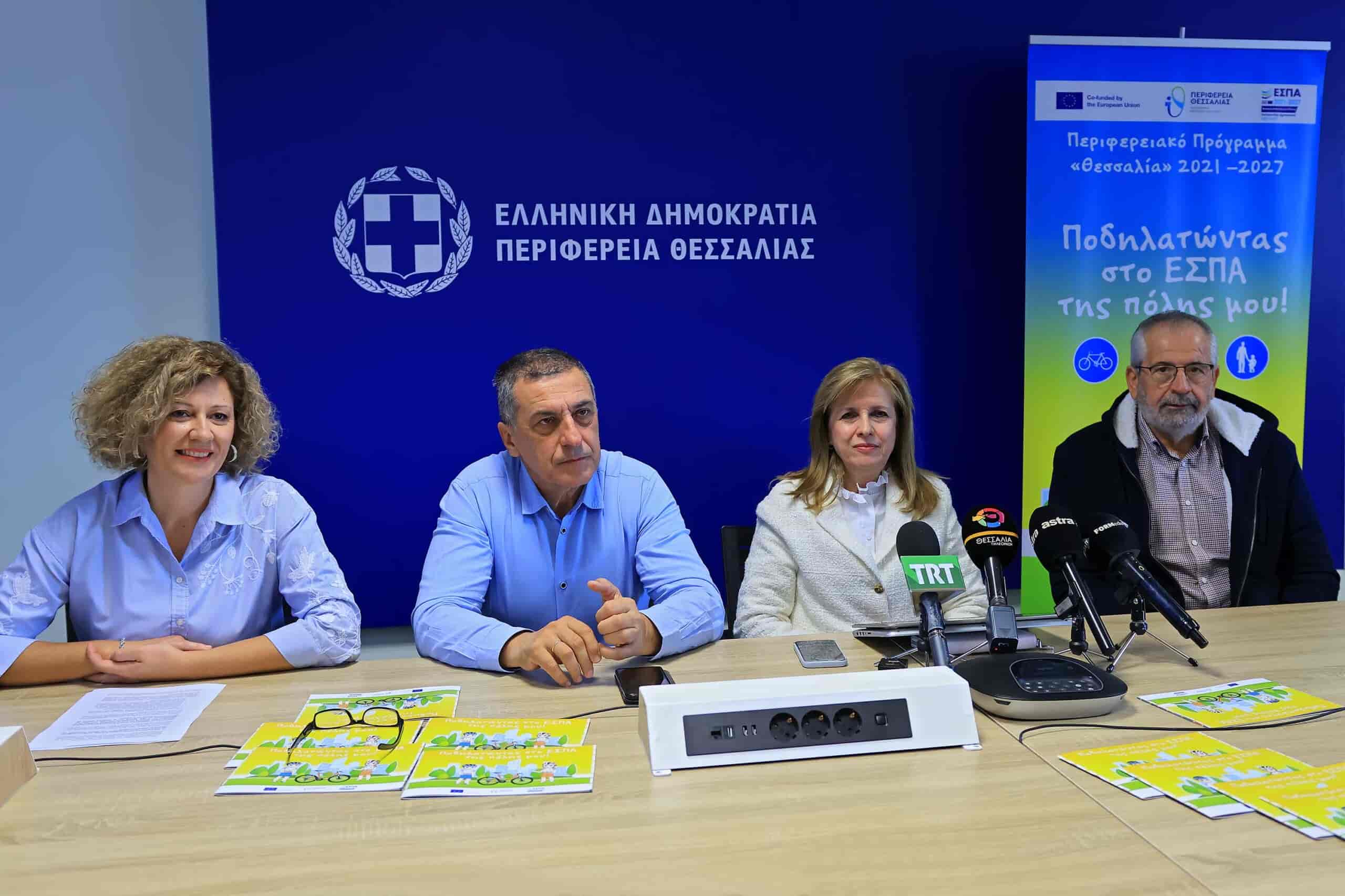 Τη  σημασία  της προώθησης της βιώσιμης κινητικότητας και της κυκλοφοριακής αγωγής στις νέες γενιές, επεσήμανε ο Περιφερειάρχης Θεσσαλίας Δημήτρης Κουρέτας σία  της προώθησης της βιώσιμης κινητικότητας και της κυκλοφοριακής αγωγής στις νέες γενιές, επεσήμανε ο Περιφερειάρχης Θεσσαλίας Δημήτρης Κουρέτας, στο πλαίσιο συνέντευξης τύπου που δόθηκε για την παρουσίαση του έργου «Ποδηλατώντας στο ΕΣΠΑ της Πόλης μου», που έχει ως στόχο  την ευαισθητοποίηση και εκπαίδευση 5.000 μαθητών της Θεσσαλίας σε θέματα κυκλοφοριακής αγωγής και ασφάλειας.