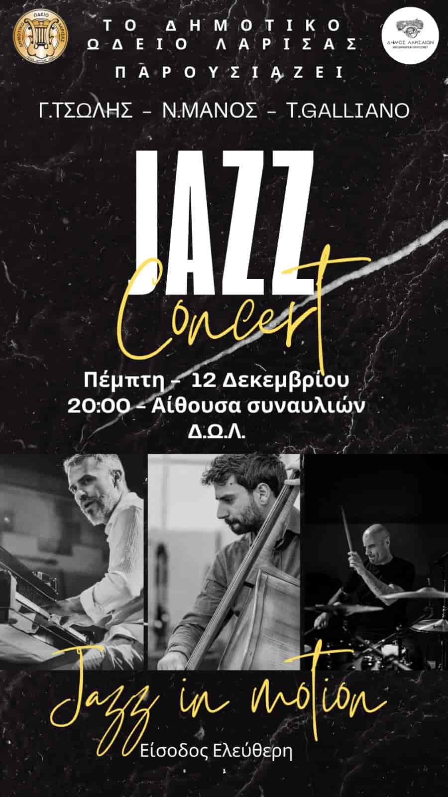 Ένα εξαιρετικό τζαζ τρίο με επικεφαλής τον καταξιωμένο καθηγητή τζαζ πιάνου του Ωδείου, Γιώργο Τσώλη, θα έχουν την ευκαιρία να απολαύσουν οι λάτρεις της τζαζ μουσικής κι όχι μόνο, την Πέμπτη 12 Δεκεμβρίου 2024, στις 8 το βράδυ, στη σκηνή της Αίθουσας Συναυλιών του Δ.Ω.Λ. Μία ξεχωριστή μουσική εμπειρία που διοργανώνει το Δημοτικό Ωδείο Λάρισας, στο πλαίσιο του προγράμματος «Εκπαιδευτικές Συναυλίες – Μεγάλοι Σολίστ». Μαζί με τον Γιώργο Τσώλη θα συμπράξουν στη σκηνή οι διακεκριμένοι καλλιτέχνες Ντίνος Μάνος στο μπάσο και Thomas Galliano στα κρουστά, προσφέροντας μια μοναδική ερμηνεία στον κόσμο της τζαζ.