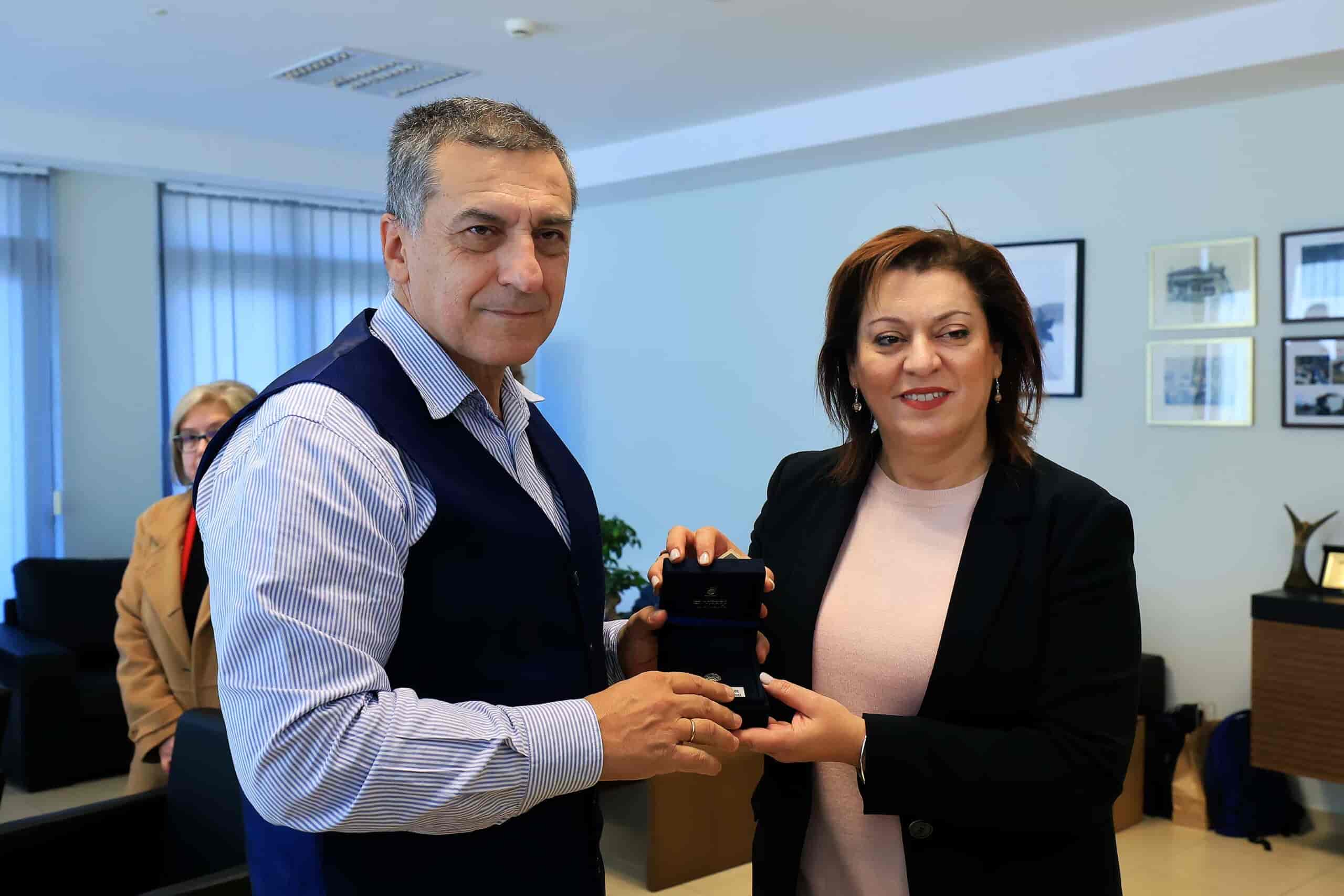 Επίσκεψη στον Περιφερειάρχη Θεσσαλίας Δημήτρη Κουρέτα, πραγματοποίησε σήμερα η Υπουργός Παιδείας , Αθλητισμού και Νεολαίας της Κύπρου, Αθηνά Μιχαηλίδου, συνοδευόμενη από την Υφυπουργό Παιδείας της Ελλάδας, κα Ζέττα Μακρή. Στο επίκεντρο της συνάντησης, βρέθηκαν οι πρωτοβουλίες για την ενίσχυση της συνεργασίας στον τομέα της εκπαίδευσης και οι δράσεις που προωθεί η Περιφέρεια Θεσσαλίας για την ανάδειξη της ιστορικής μνήμης.