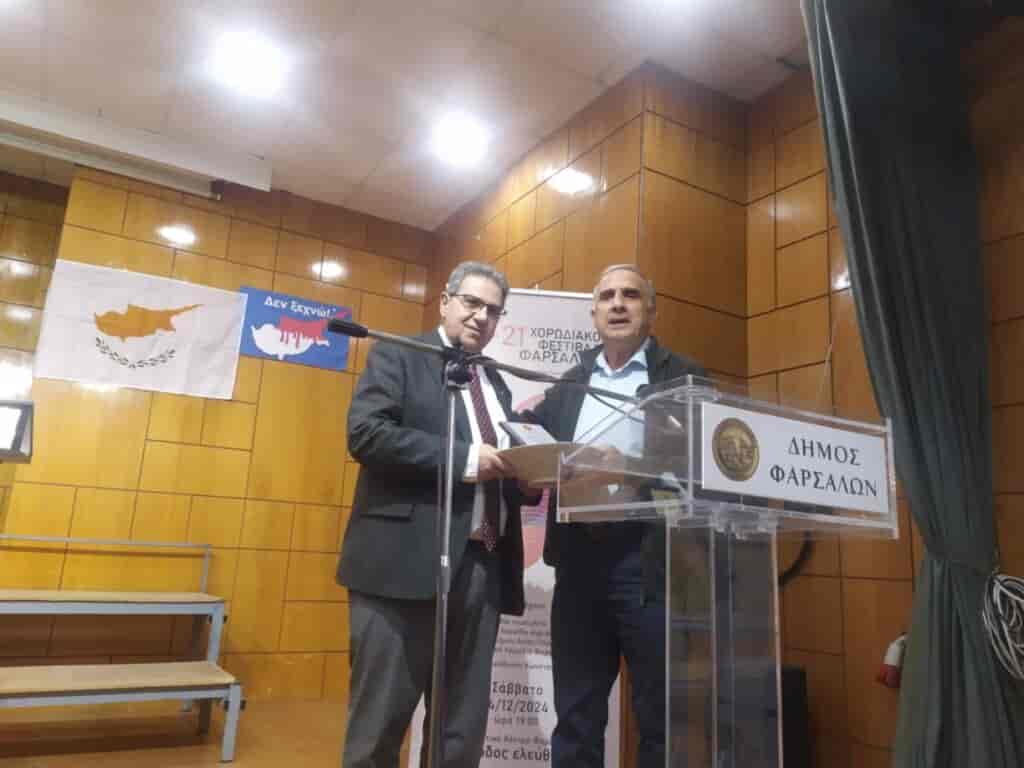 Στον χαιρετισμό του ο Δήμαρχος Φαρσάλων, Μάκης Εσκίογλου τόνισε μεταξύ άλλων: “Θέλω να ευχαριστήσω την αντιπροσωπεία της Κύπρου και τον αντιδήμαρχο Λιβαδίων του Δήμου Λάρνακας. Έχει ξεκινήσει μία αδελφοποίηση εδώ και πολλά χρόνια με τον Δήμο Λιβαδίων. Τη σχέση μου με την Κύπρο όλοι την γνωρίζετε. Αποφασίσαμε φέτος να αφιερώσουμε το 21ο Φεστιβάλ στην επέτειο από τα 50 χρόνια της εισβολής στην Κύπρο. Πενήντα δύσκολα χρόνια για την Κύπρο και για τον Ελληνισμό. Έχει μεγάλη σημασία για εμάς να μην ξεχνάμε, τον Γολγοθά των αδελφών μας Κυπρίων. Χρόνια πολλά και καλές γιορτές σε όλους”.
