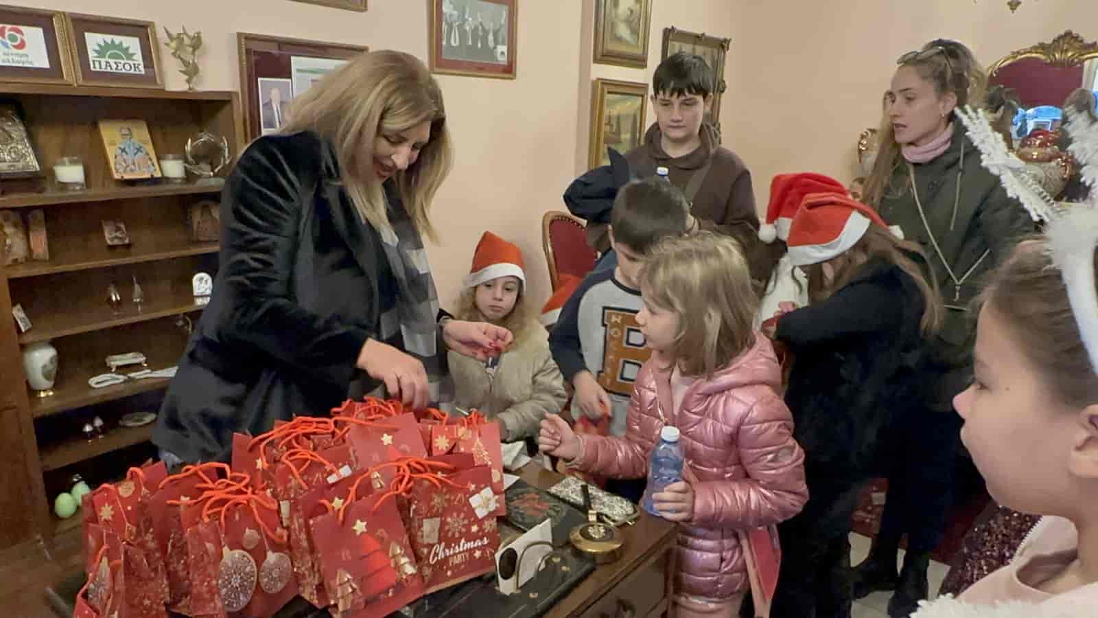 Τα χριστουγεννιάτικα κάλαντα στην Τομεάρχη Δικαιοσύνης, Θεσμών & Διαφάνειας του ΠΑΣΟΚ-ΚΙΝΑΛ και βουλευτή Λάρισας, Ευαγγελία Λιακούλη έψαλαν τα παιδιά του “Εργαστηρίου Ζωής” του Κέντρου Πρόληψης Λάρισας.