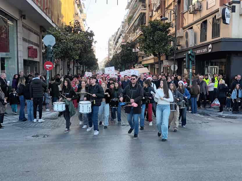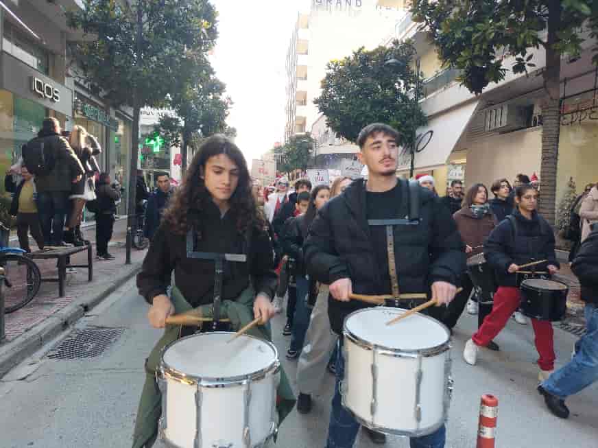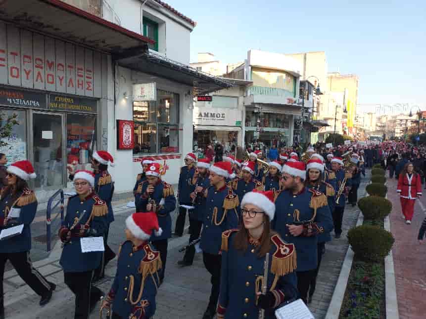 Εκατοντάδες, μικροί και μεγάλοι, «Άι Βασίληδες» περπάτησαν στο κέντρο της Λάρισας, συνοδεία της Φιλαρμονικής Ορχήστρας του Δήμου Λαρισαίων και του τμήματος Κρουστών του Μουσικού Σχολείου Λάρισας για να καταλήξουν στην Κεντρική πλατεία για μια πολύ όμορφη γιορτή.