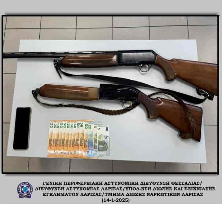 Σε εγκαταλειμμένη αποθήκη σε αγροτική περιοχή του Δήμου Τυρνάβου βρέθηκαν και κατασχέθηκαν -6- σακούλες απορριμμάτων, με συνολικά -37- κιλά και -900- γραμμάρια κλώνων αποξηραμένης κάνναβης και φύλλων κάνναβης, ενώ σε έρευνα που διενεργήθηκε στην οικία του βρέθηκαν και κατασχέθηκαν -2- κυνηγετικά όπλα, για τα οποία δεν είχαν γίνει ενέργειες ανανέωσης των αδειών τους.