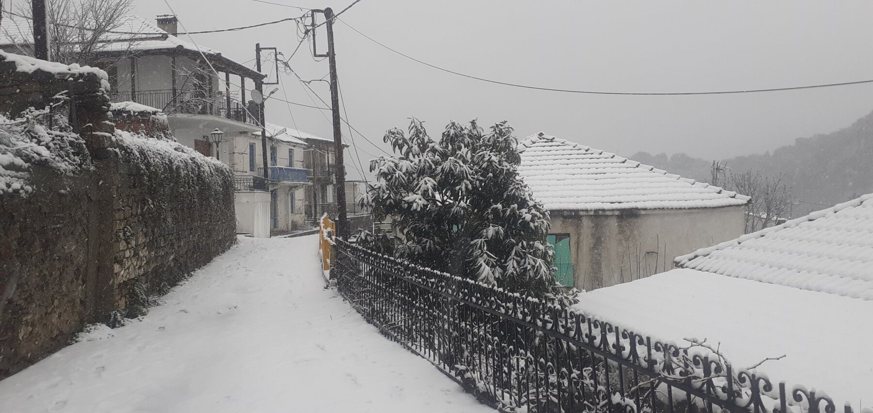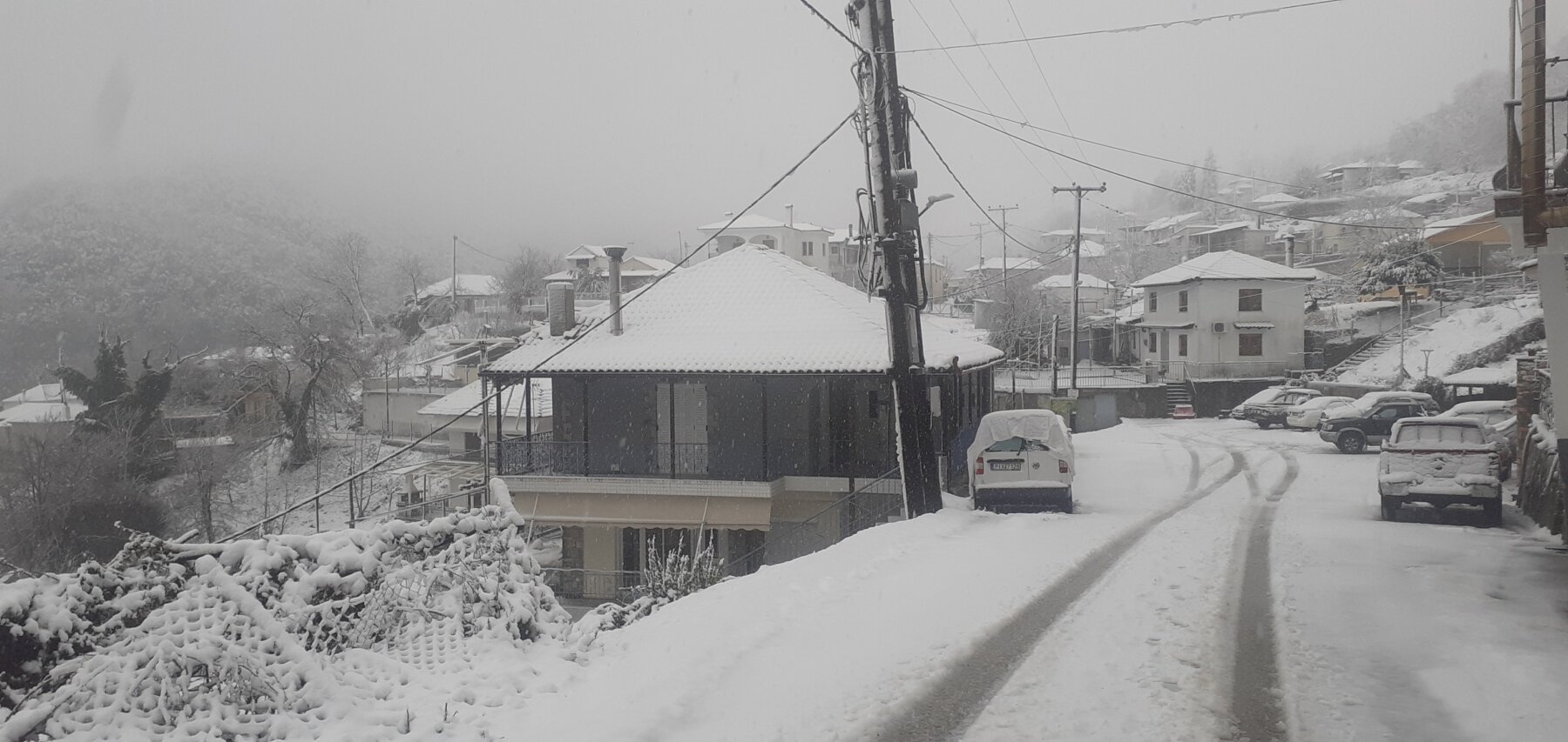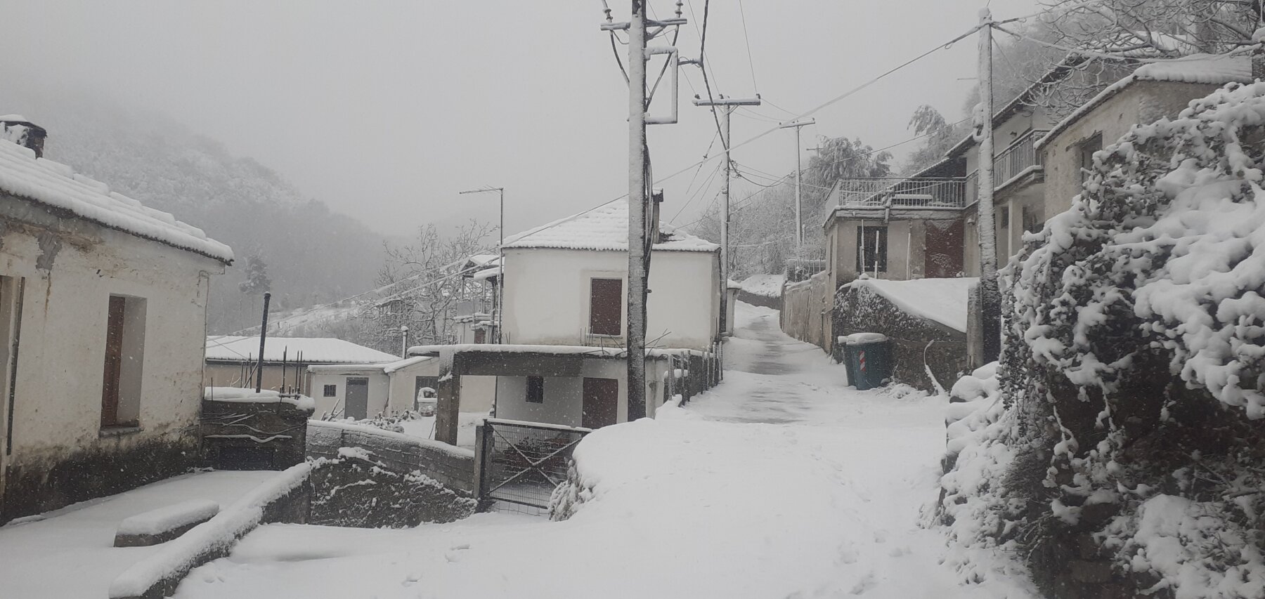 Τα χιόνια περιορίστηκαν ψηλά στα βουνά επηρεάζοντας χωριά όπως η Ανατολή, η Καρίτσα, το Σκλήθρο και η Έλαφος.
