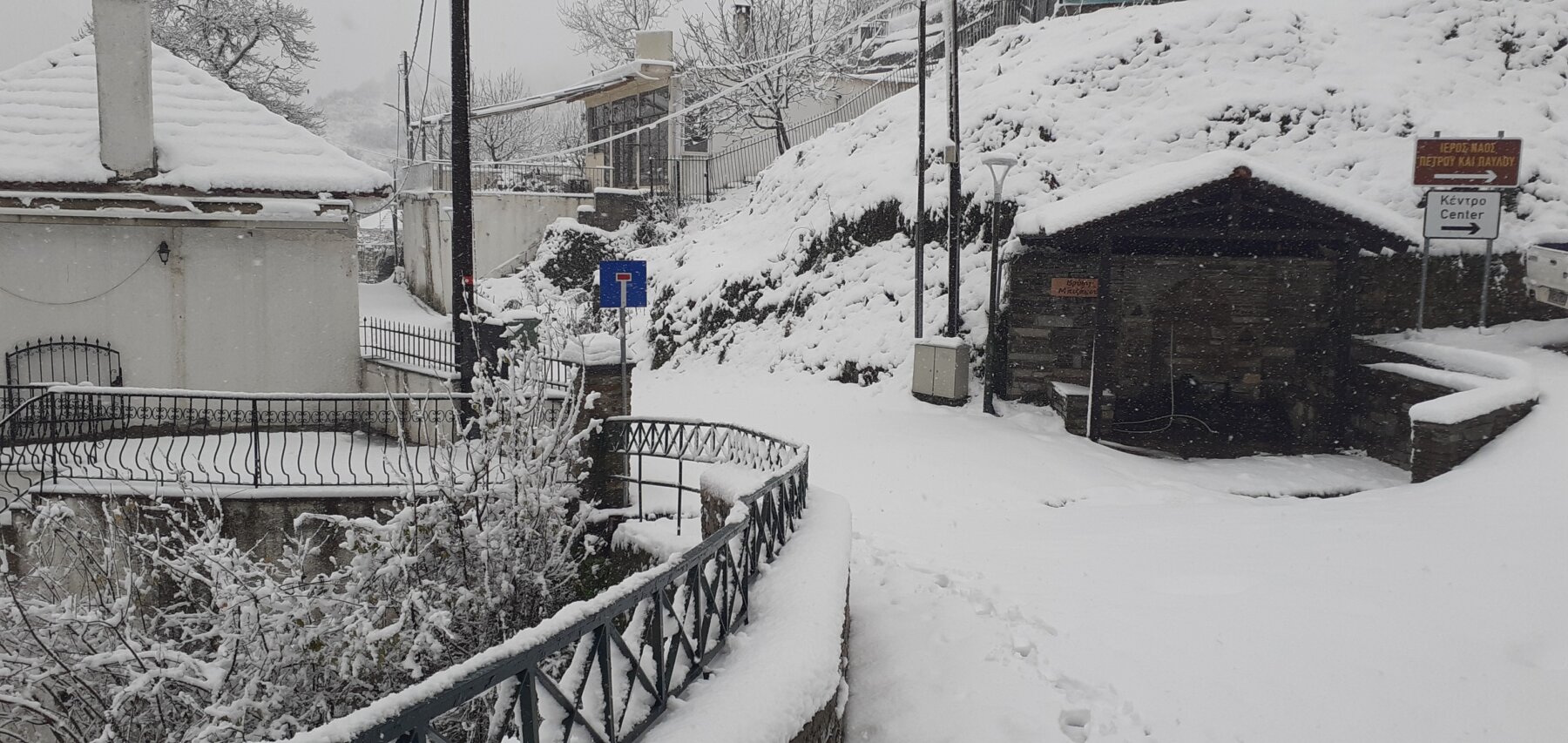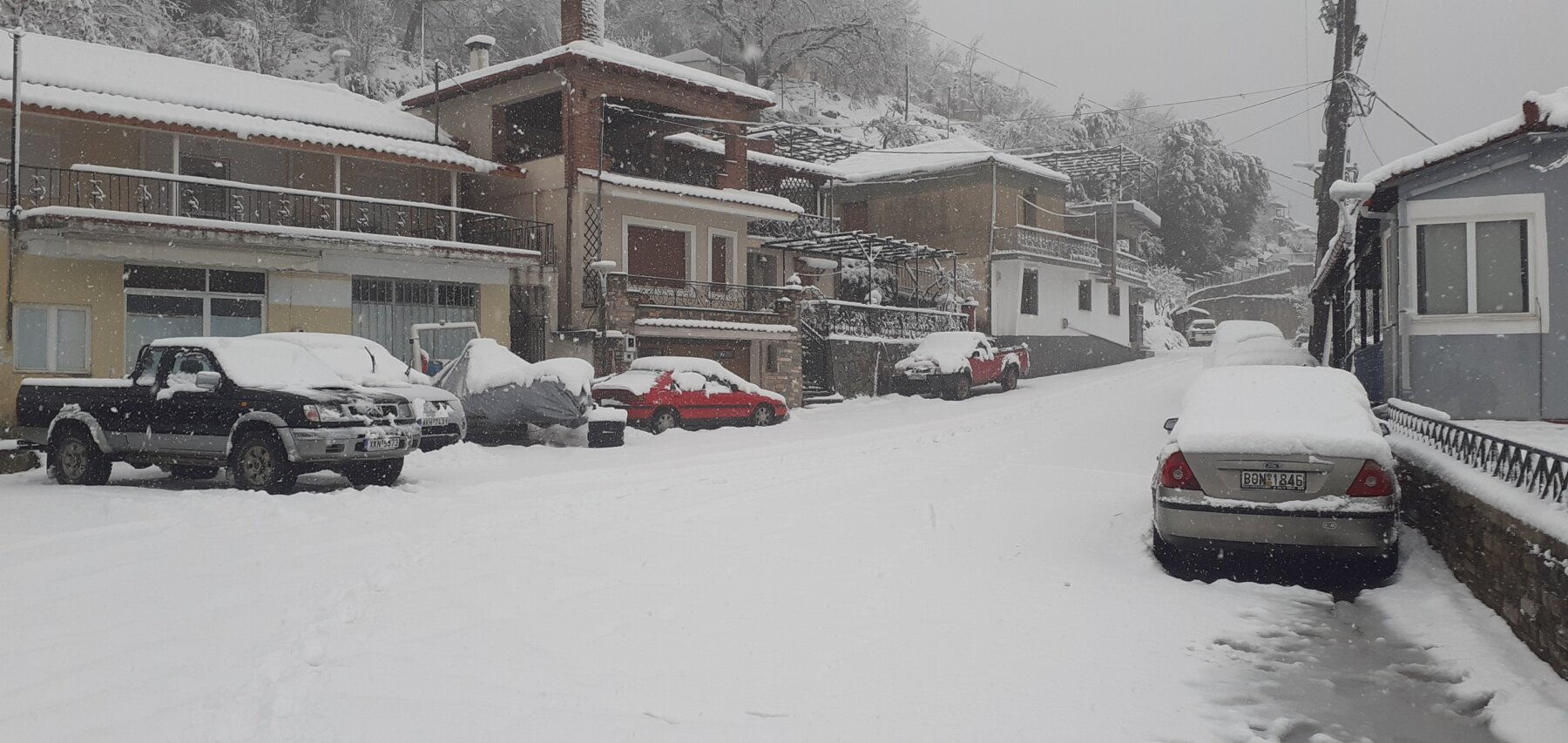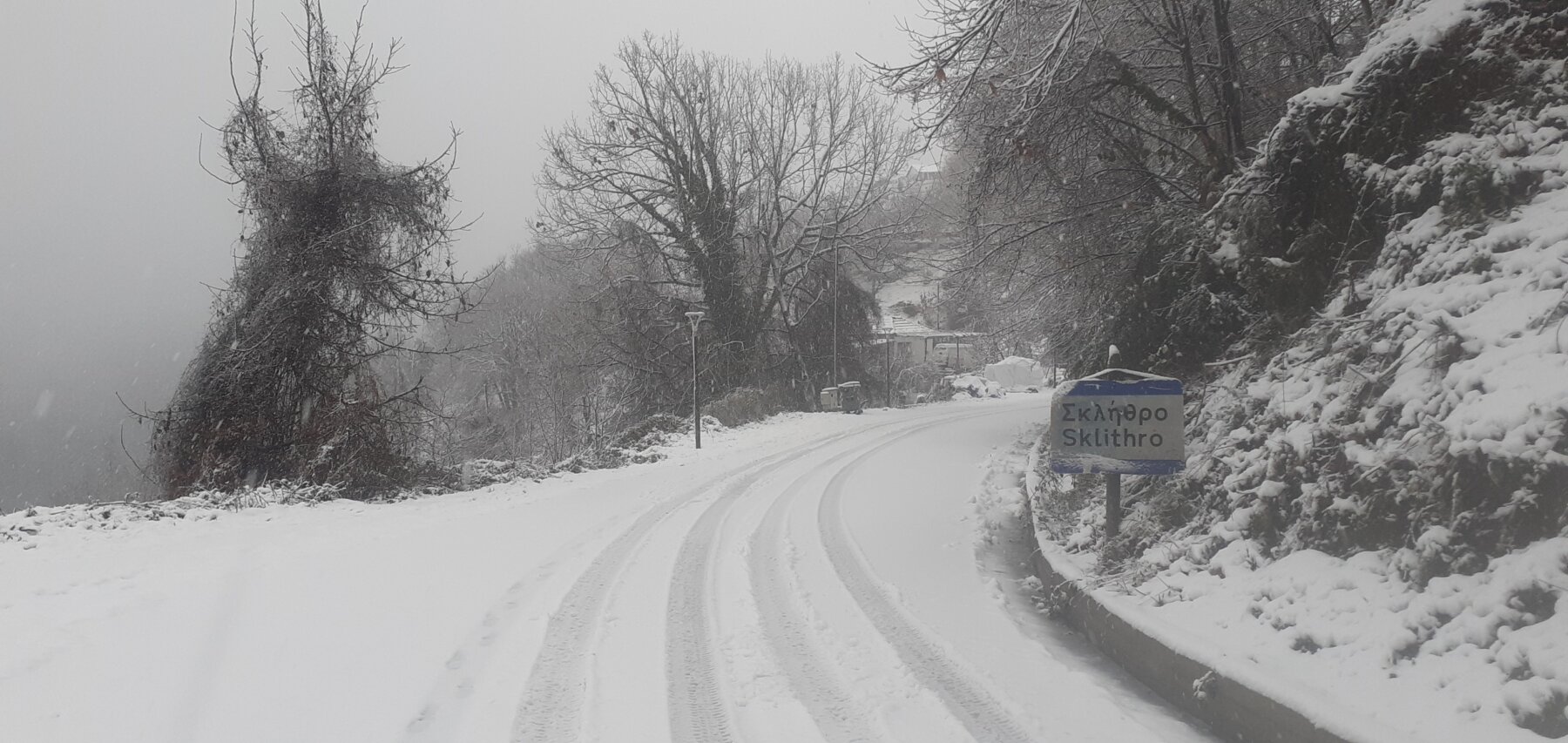 Τα χιόνια περιορίστηκαν ψηλά στα βουνά επηρεάζοντας χωριά όπως η Ανατολή, η Καρίτσα, το Σκλήθρο και η Έλαφος.