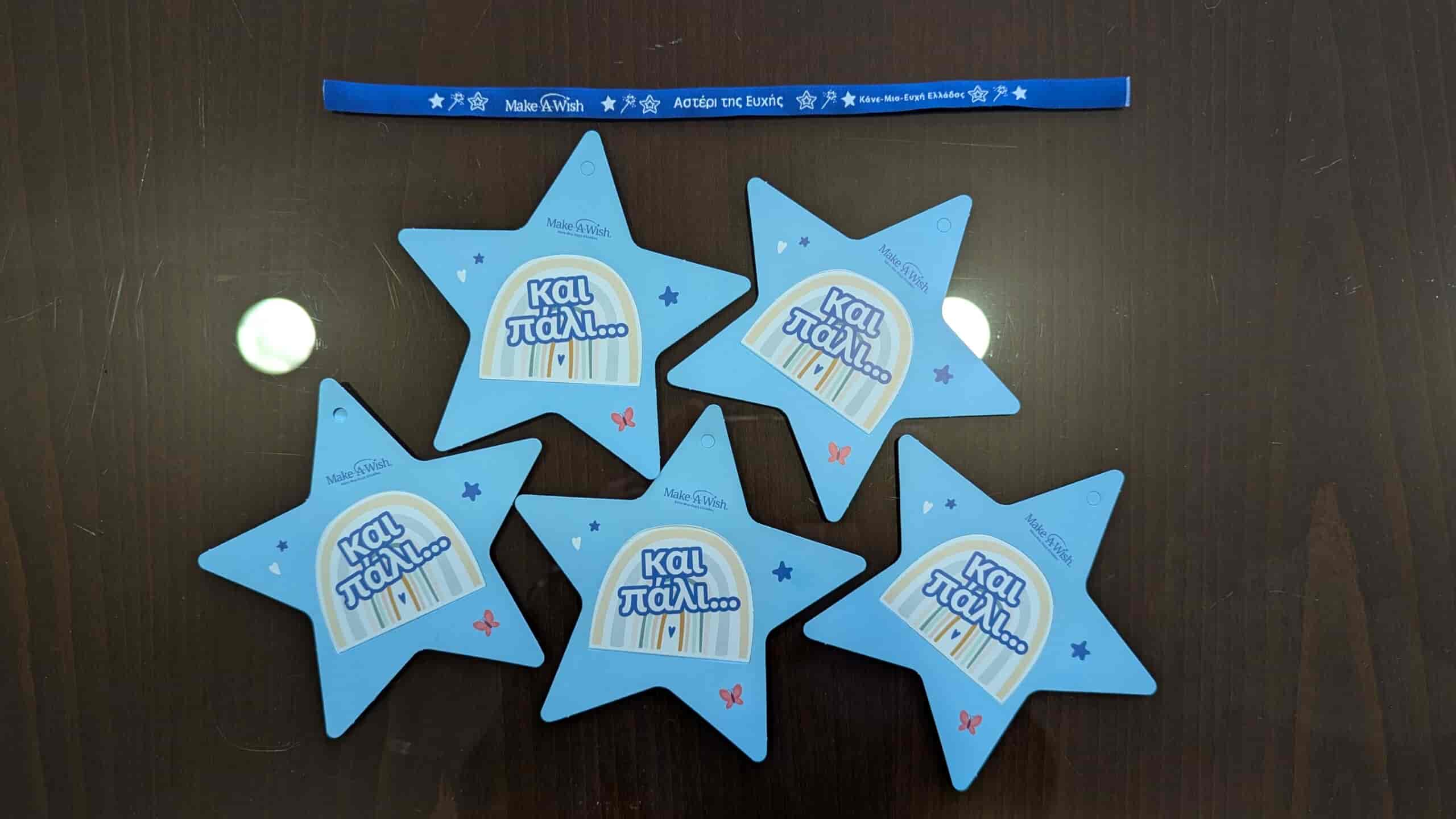 Τα αστέρια παραδόθηκαν από την εθελόντρια του «Make-A-Wish», κ. Πόπη Ρεβήσιου, στους εκπροσώπους του Τμήματος Αθλητισμού με την παρουσία και των γυμναστριών κ.κ. Σταυρούλα Λαδοπούλου, Εύη Ευαγγέλου και Ελένη Θεοδώρου.