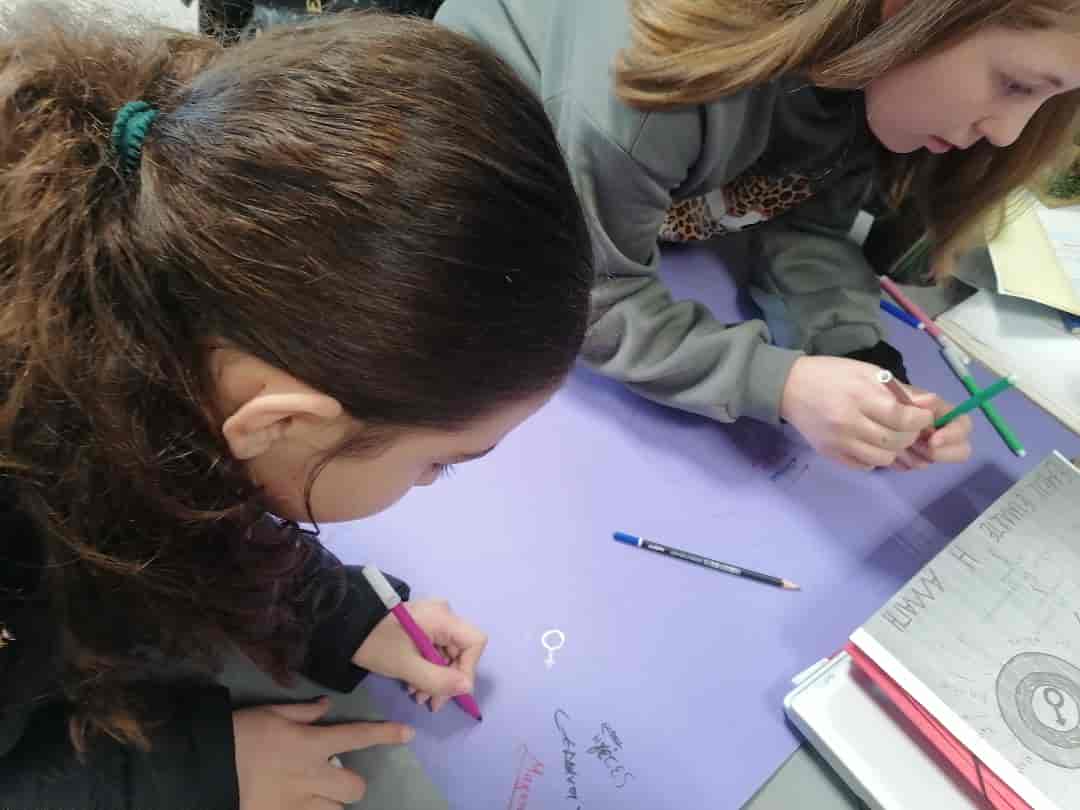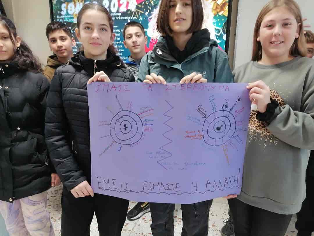 Οι μαθητές, αρχικά μέσα από ένα κιναισθητικό βιωματικό παιχνίδι και στη συνέχεια με ιδεοθύελλα, αναζήτησαν και αποτύπωσαν τα στερεότυπα που υπάρχουν για τα φύλα.