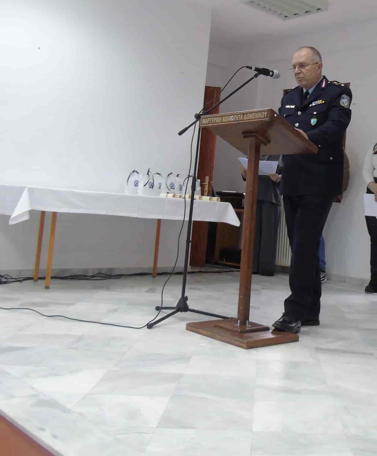 Ακολούθως, στο Παναγιώτειο Πνευματικό Κέντρο Δομένικου, ο ΓΕ.Π.Α.Δ. Θεσσαλίας πραγματοποίησε σχετική ομιλία, ενώ, στη συνέχεια, απένειμε βραβεία σε έξι μαθήτριες του Γυμνασίου και Λυκείου του Δομένικου που αρίστευσαν κατά το σχολικό έτος 2023 – 2024, δίνοντάς τους, παράλληλα, και αναμνηστικά δώρα.