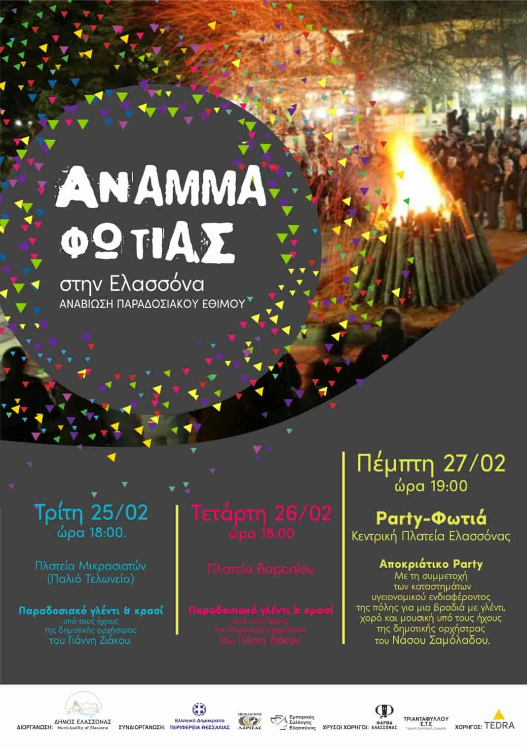 Οι Αποκριάτικες εκδηλώσεις του Δήμου Ελασσόνας συνεχίζονται με το παραδοσιακό έθιμο “Άναμμα Φωτιάς”