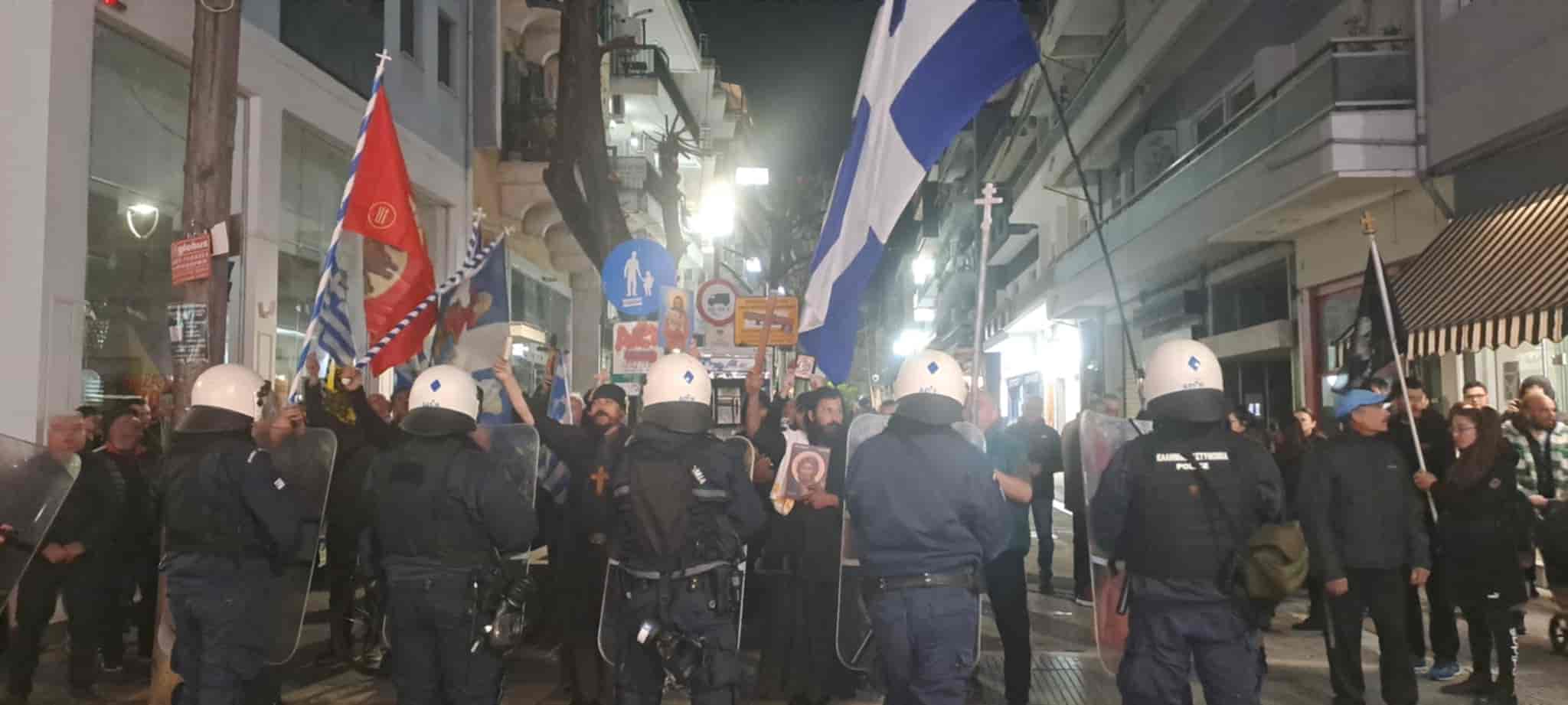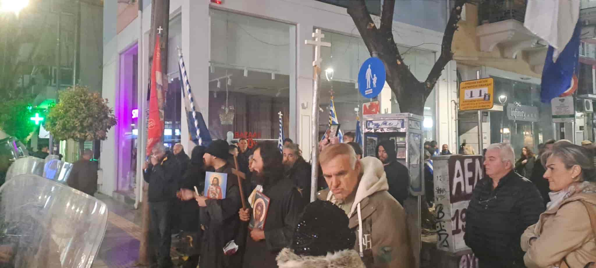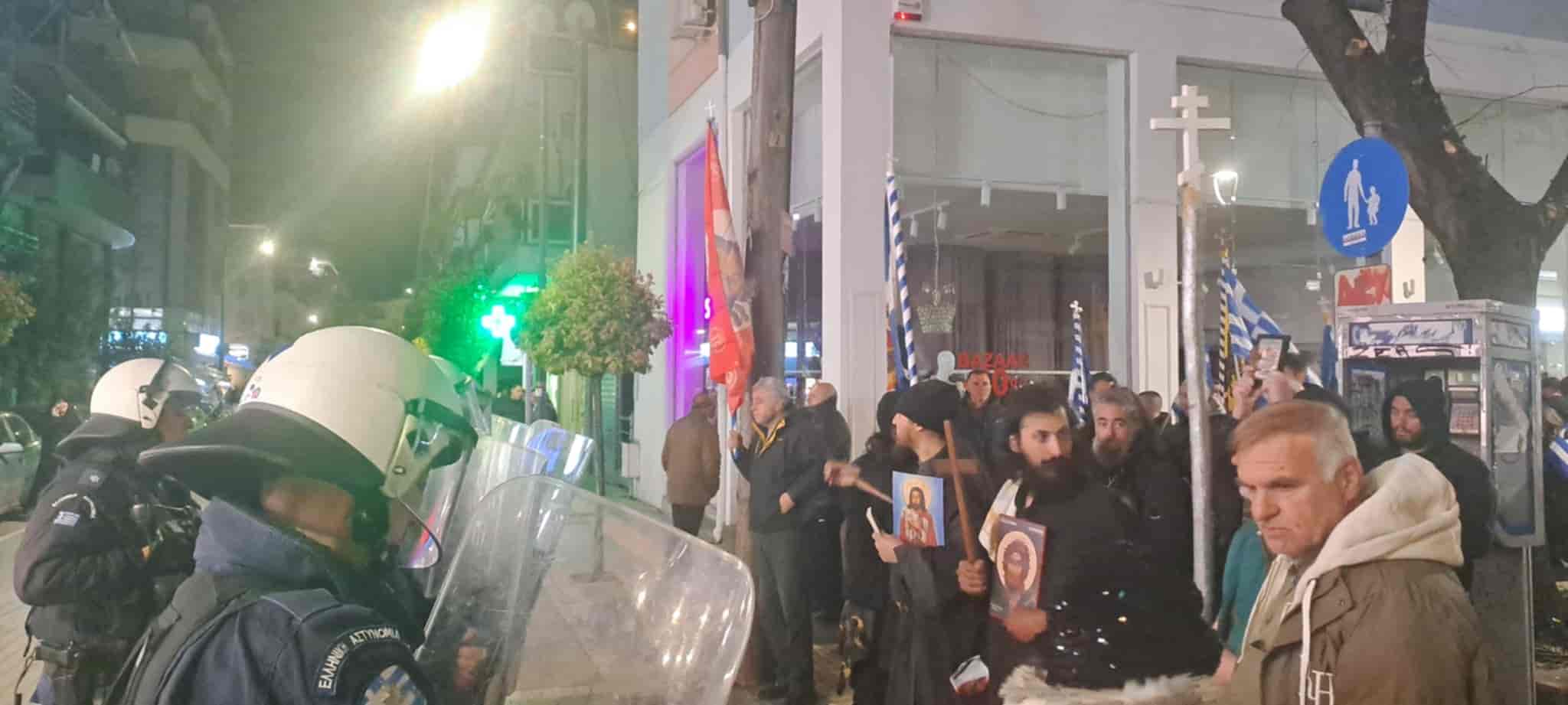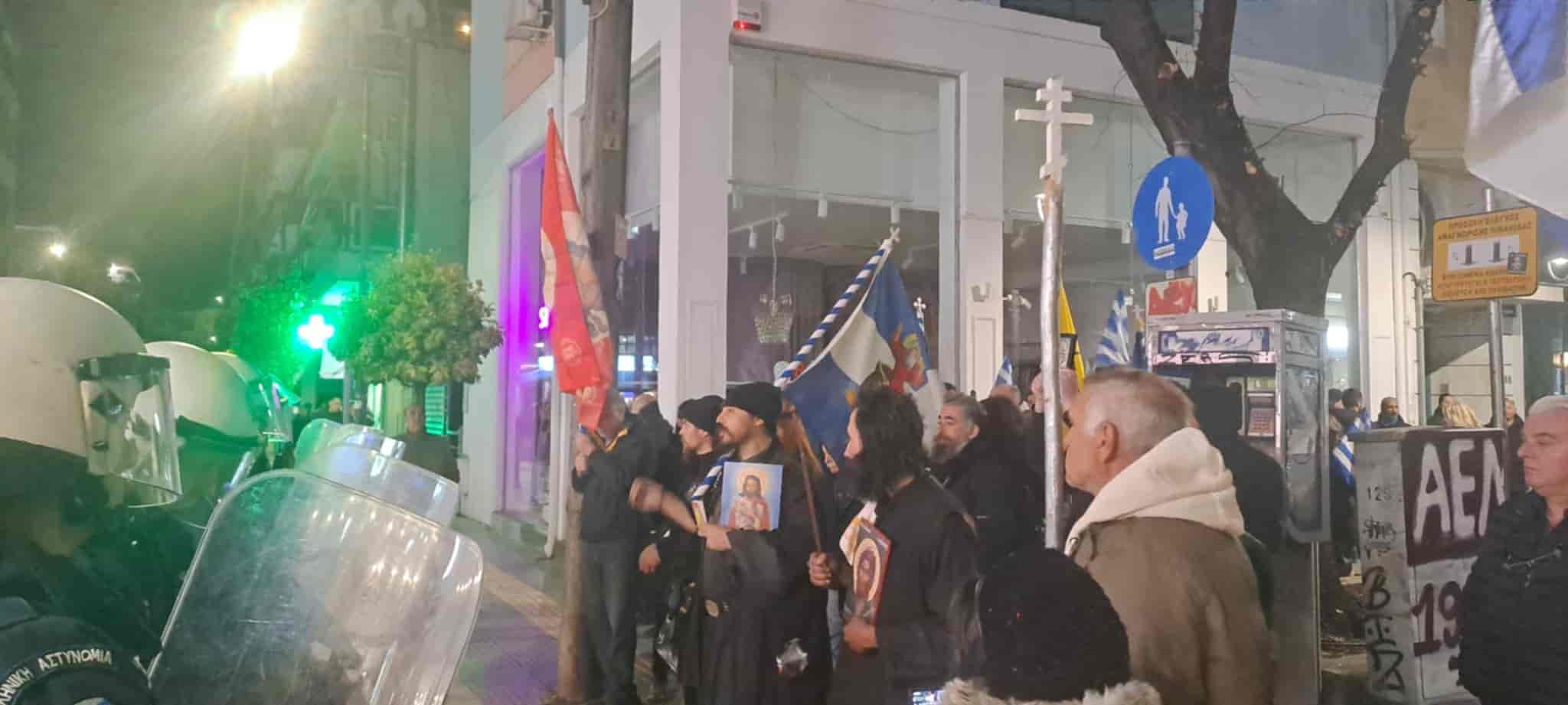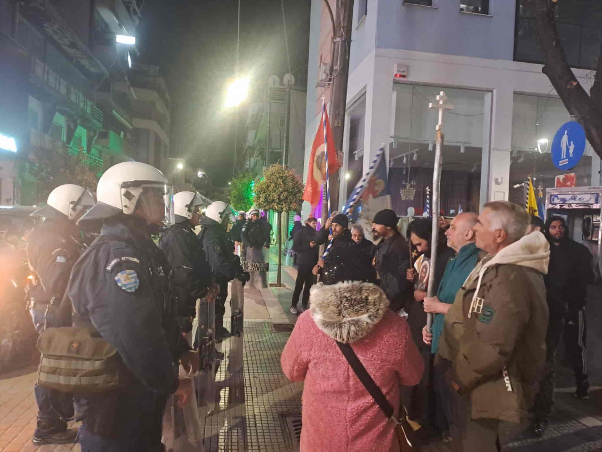 Με χριστιανικές σημαίες στα χέρια, ψάλλοντας ύμνους και φωνάζοντας συνθήματα όπως “Ελλάδα σημαίνει Ορθοδοξία” , απαιτούσαν να μην ανέβει η παράσταση.
