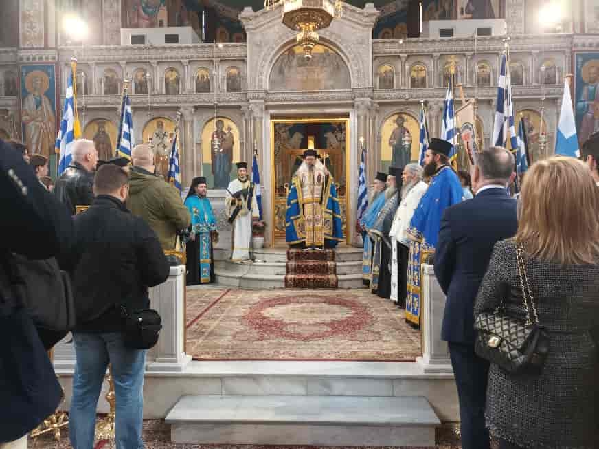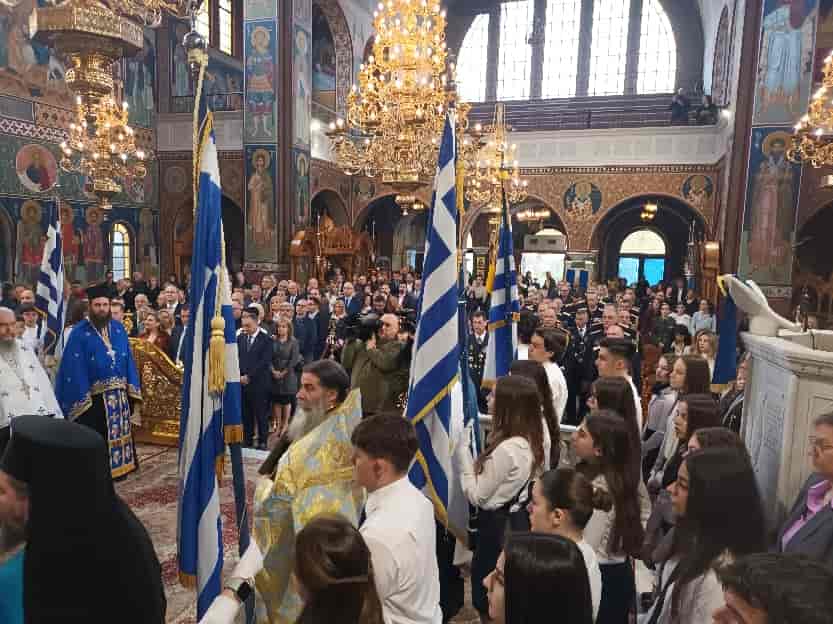 Στον Ιερό Μητροπολιτικό Ναό του Αγίου Αχιλλίου τελέστηκε η Πανηγυρική Θεία Λειτουργία της 25ης Μαρτίου, χοροστατούντος του σεβασμιότατου Μητροπολίτη Λαρίσης και Τυρνάβου κ. Ιερώνυμου παρουσία πολιτικών και στρατιωτικών Αρχών της πόλης.