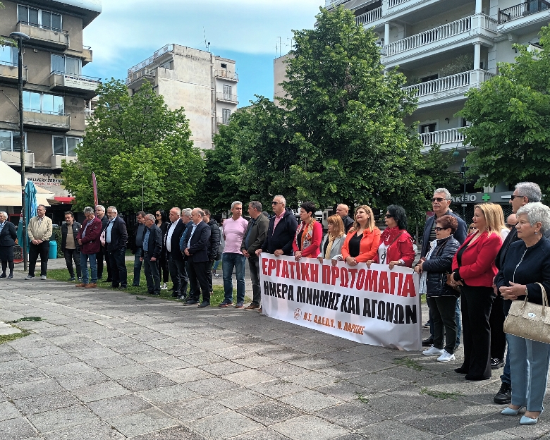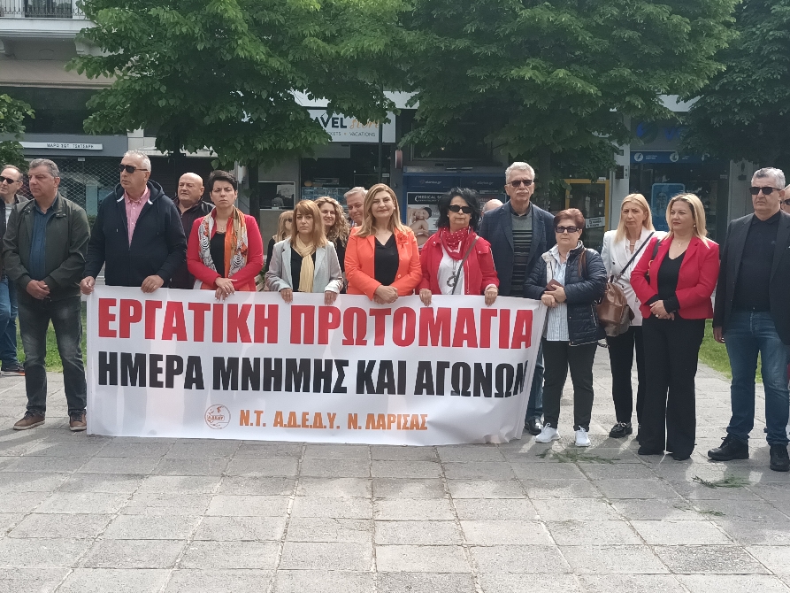 Απεργιακή κινητοποίηση πραγματοποιήθηκε το πρωί της Πέμπτης 1 Μαΐου στην πλατεία Νομαρχίας (Ρήγα Φεραίου) από το Νομαρχιακό Τμήμα Λάρισας της ΑΔΕΔΥ.
