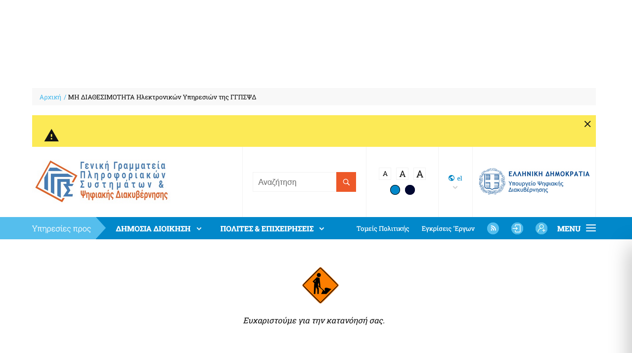 «Μη διαθεσιμότητα ηλεκτρονικών υπηρεσιών λόγω αναβάθμισης των Υποδομών Βάσεων Δεδομένων της Γενικής Γραμματείας Πληροφοριακών Συστημάτων και Ψηφιακής Διαχείρισης», αναφέρεται στην ιστοσελίδα του taxis net.