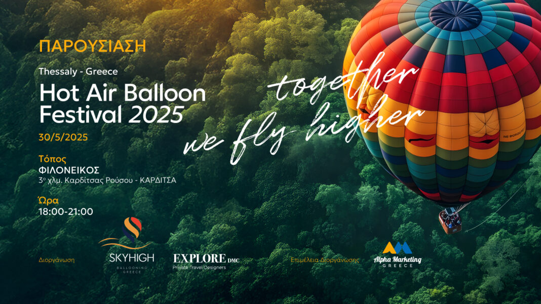 Πρόσκληση σε πτήση γνωριμίας με αερόστατο και παρουσίαση του Τhessaly Ηot Αir Βalloon Festival 2025