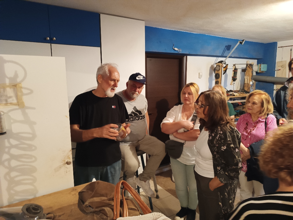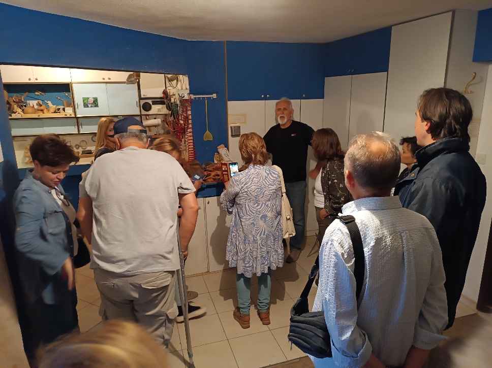 Η ξενάγηση ήταν μια αποκαλυπτική διαδρομή στη δημιουργική διαδικασία της γλυπτικής τέχνης. Ο καλλιτέχνης μοιράστηκε με πάθος τα μυστικά του: από την πρώτη σύλληψη της ιδέας μέχρι την τελική μορφοποίηση του γλυπτού. Τα εργαλεία του, προέκταση των χεριών του, απαιτούν δεξιοτεχνία και εξαιρετική προσοχή, καθώς κάθε γλύπτης εργάζεται με υλικά που απαιτούν ακρίβεια και ασφάλεια. Επίσης αναφέρθηκε για την επικινδυνότητα στη χρήση των εργαλείων και πόση μεγάλη προσοχή χρειάζεται ο κάθε γλύπτης στη χρήση αυτών.