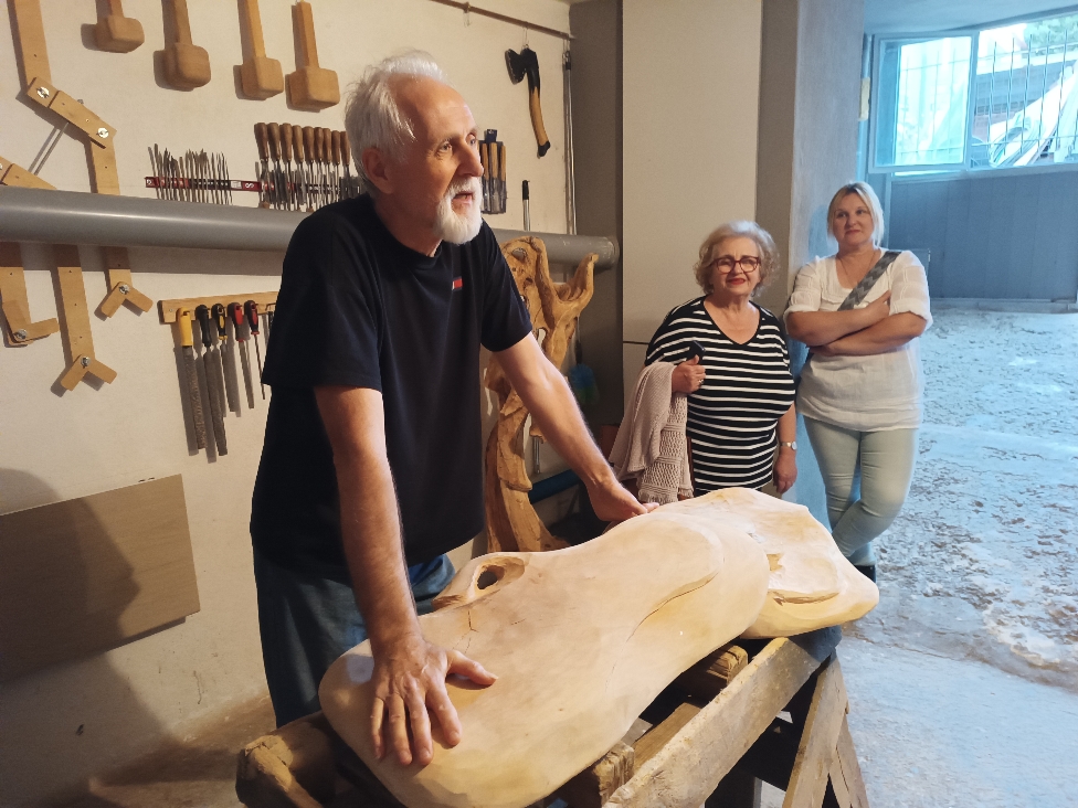Η ξενάγηση ήταν μια αποκαλυπτική διαδρομή στη δημιουργική διαδικασία της γλυπτικής τέχνης. Ο καλλιτέχνης μοιράστηκε με πάθος τα μυστικά του: από την πρώτη σύλληψη της ιδέας μέχρι την τελική μορφοποίηση του γλυπτού. Τα εργαλεία του, προέκταση των χεριών του, απαιτούν δεξιοτεχνία και εξαιρετική προσοχή, καθώς κάθε γλύπτης εργάζεται με υλικά που απαιτούν ακρίβεια και ασφάλεια. Επίσης αναφέρθηκε για την επικινδυνότητα στη χρήση των εργαλείων και πόση μεγάλη προσοχή χρειάζεται ο κάθε γλύπτης στη χρήση αυτών.
