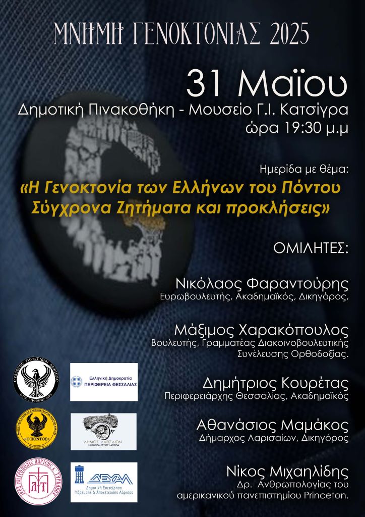 της Δημοτικής Πινακοθήκης Λάρισας διοργανώνουν την ημερίδα «Γενοκτονία του