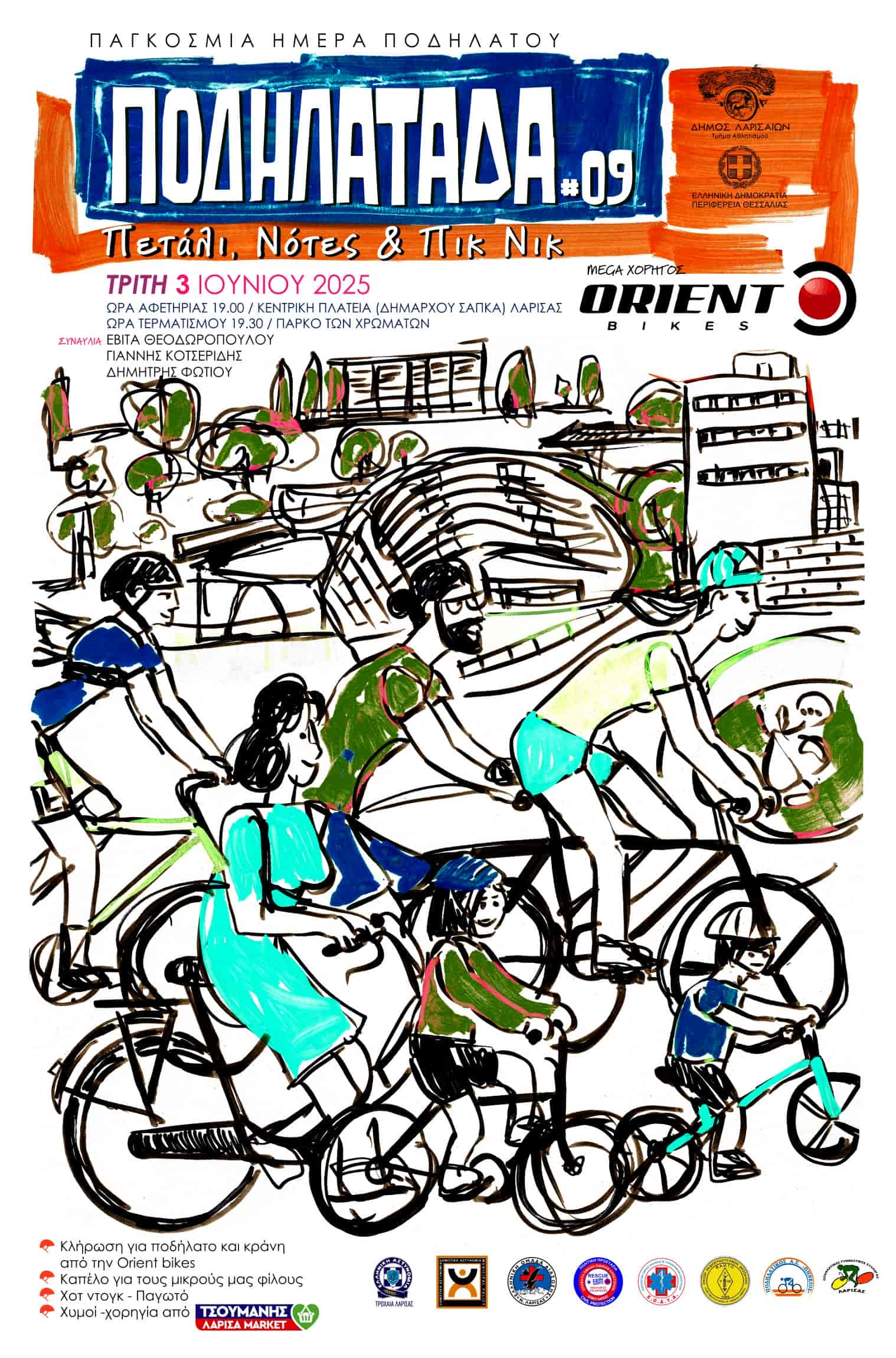Με ποδηλατάδα στην πόλη και μια μεγάλη γιορτή στο Πάρκο των Χρωμάτων γιορτάζει την Παγκόσμια Ημέρα Ποδηλάτου ο Δήμος Λαρισαίων. Η εκδήλωση, με θέμα «Πετάλι, Νότες και Πικ-Νικ», πραγματοποιείται σε συνεργασία με την Περιφέρεια Θεσσαλίας, με την επιμέλεια του Τμήματος Αθλητισμού της Αντιδημαρχίας Παιδείας και Άθλησης, την Τρίτη, 3 Ιουνίου.