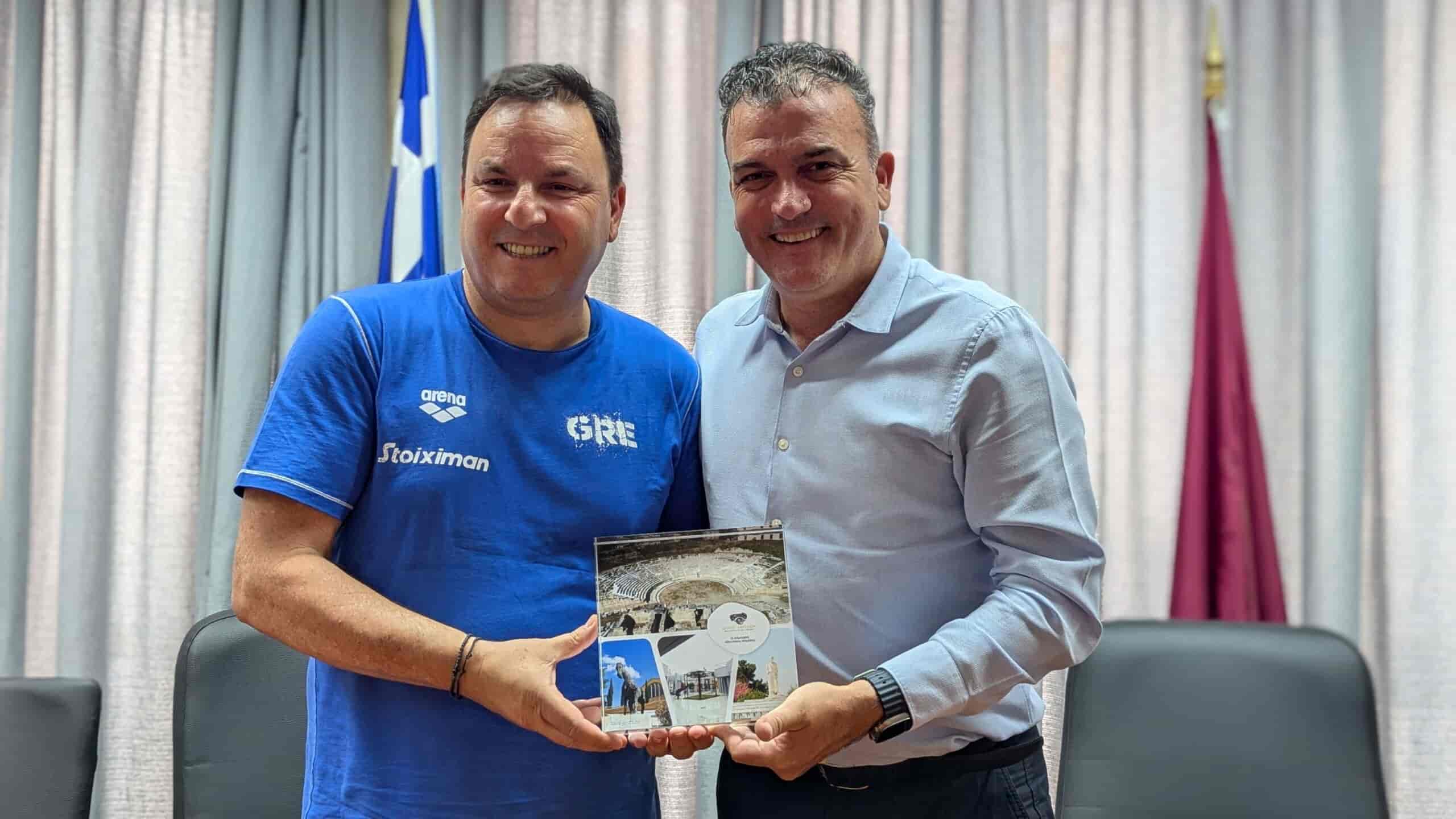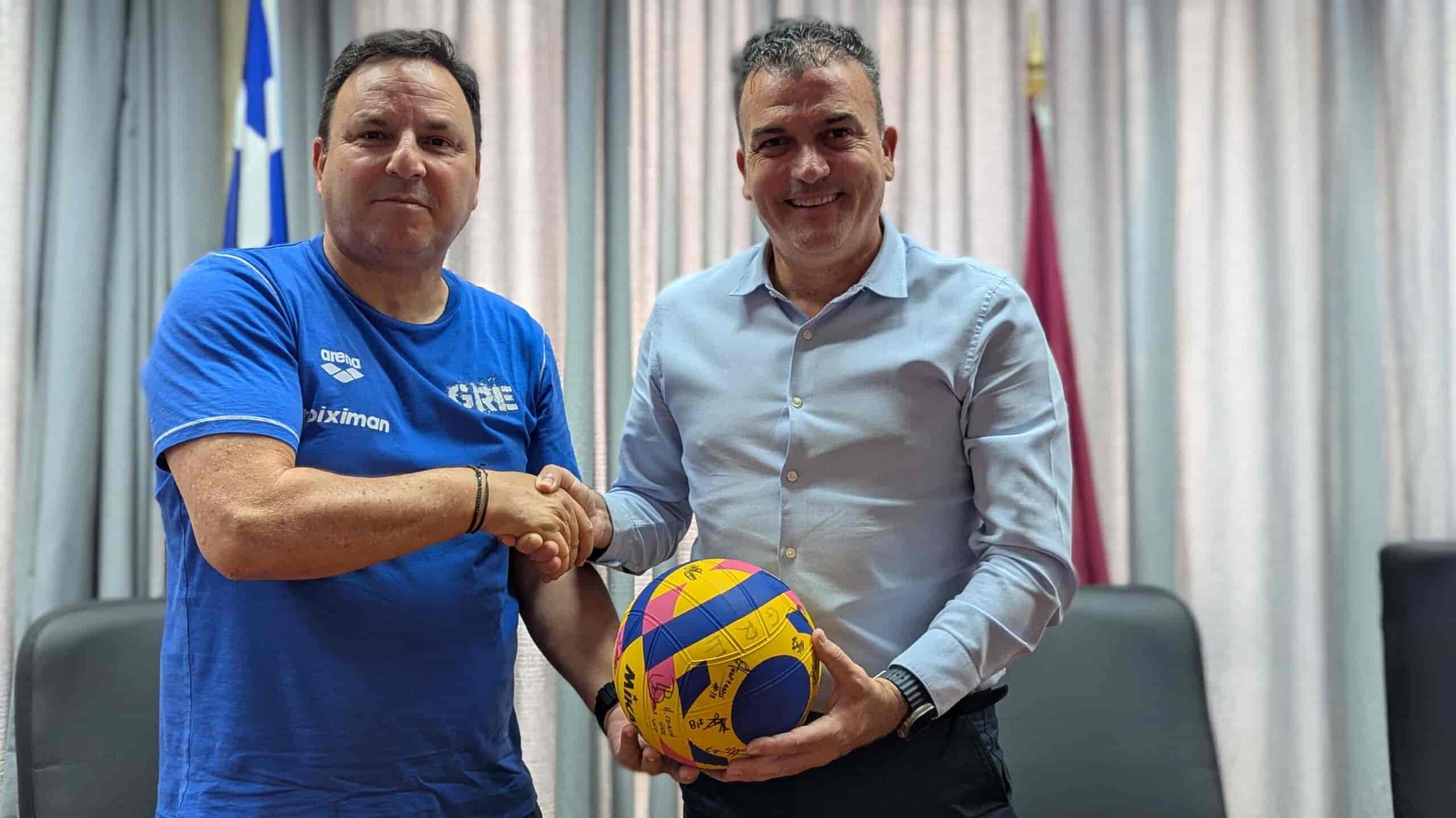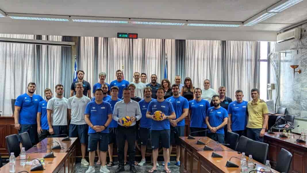 Τους αθλητές και το team της Εθνικής Ομάδας Υδατοσφαίρισης Ανδρών υποδέχθηκε ο Δήμαρχος Λαρισαίων, κ.Θανάσης Μαμάκος λίγες μόνον ώρες πριν τη διεξαγωγή του φιλικού αγώνα με την Εθνική Ιταλίας, που πραγματοποιείται απόψε στη Λάρισα.