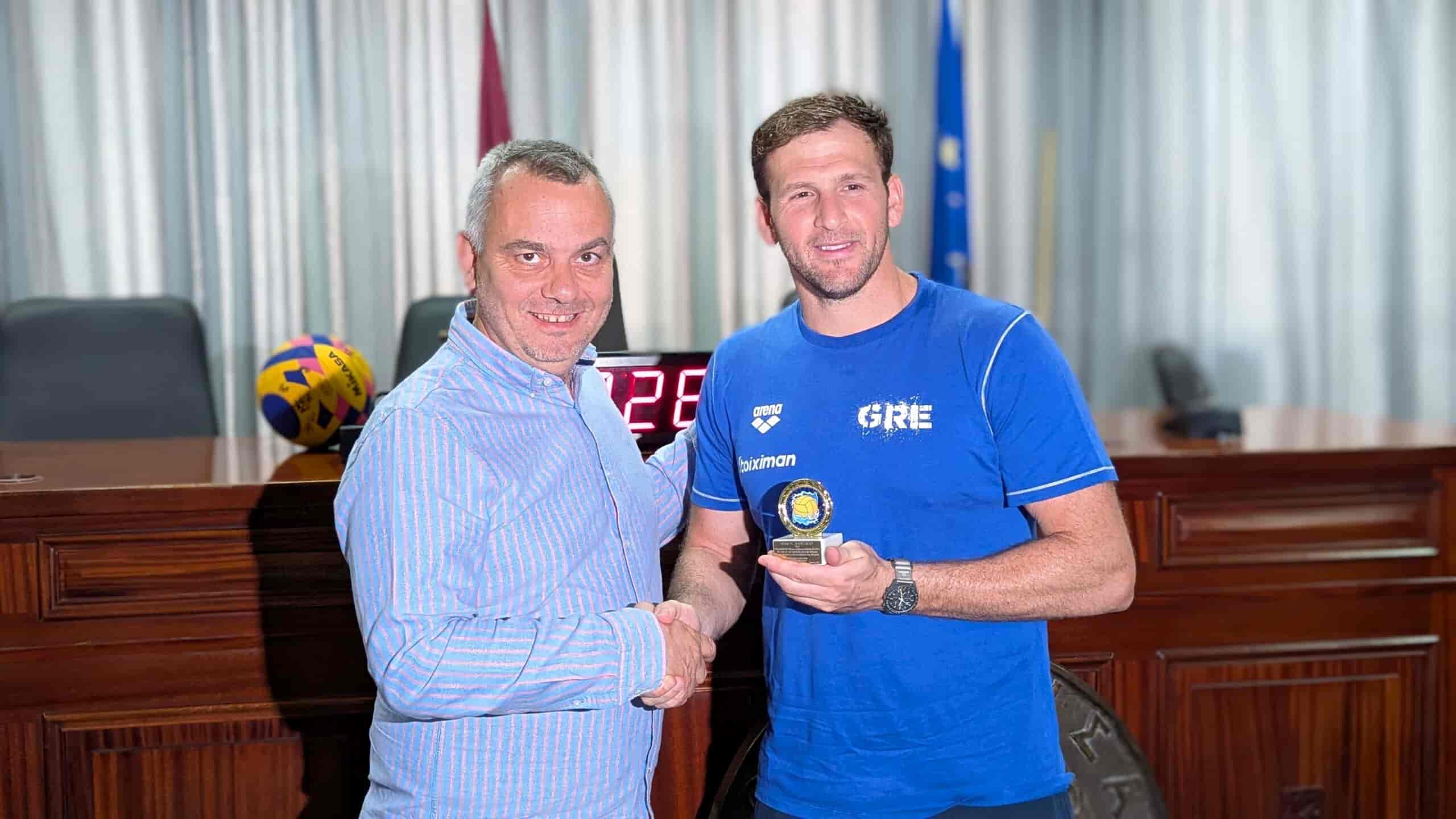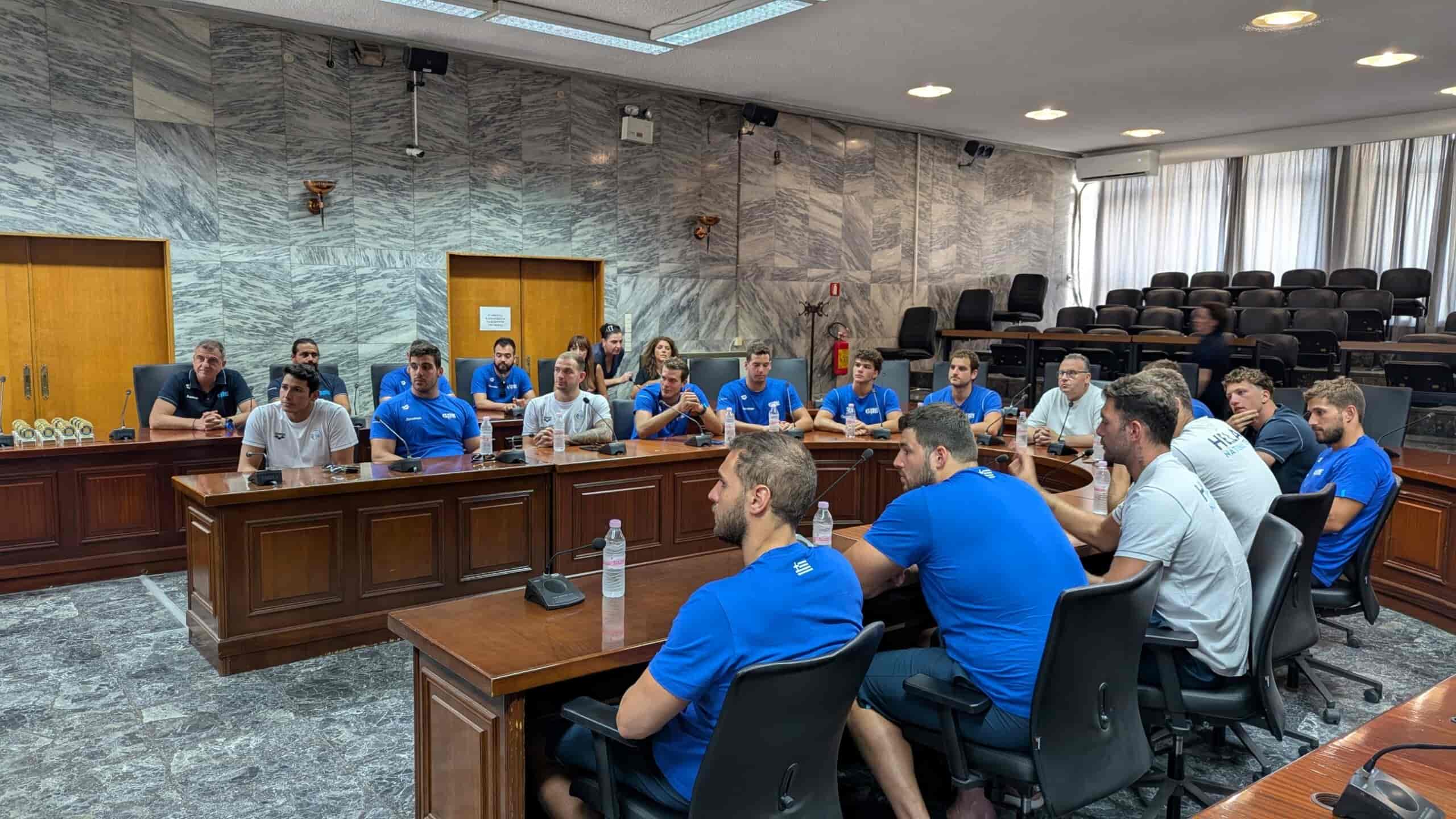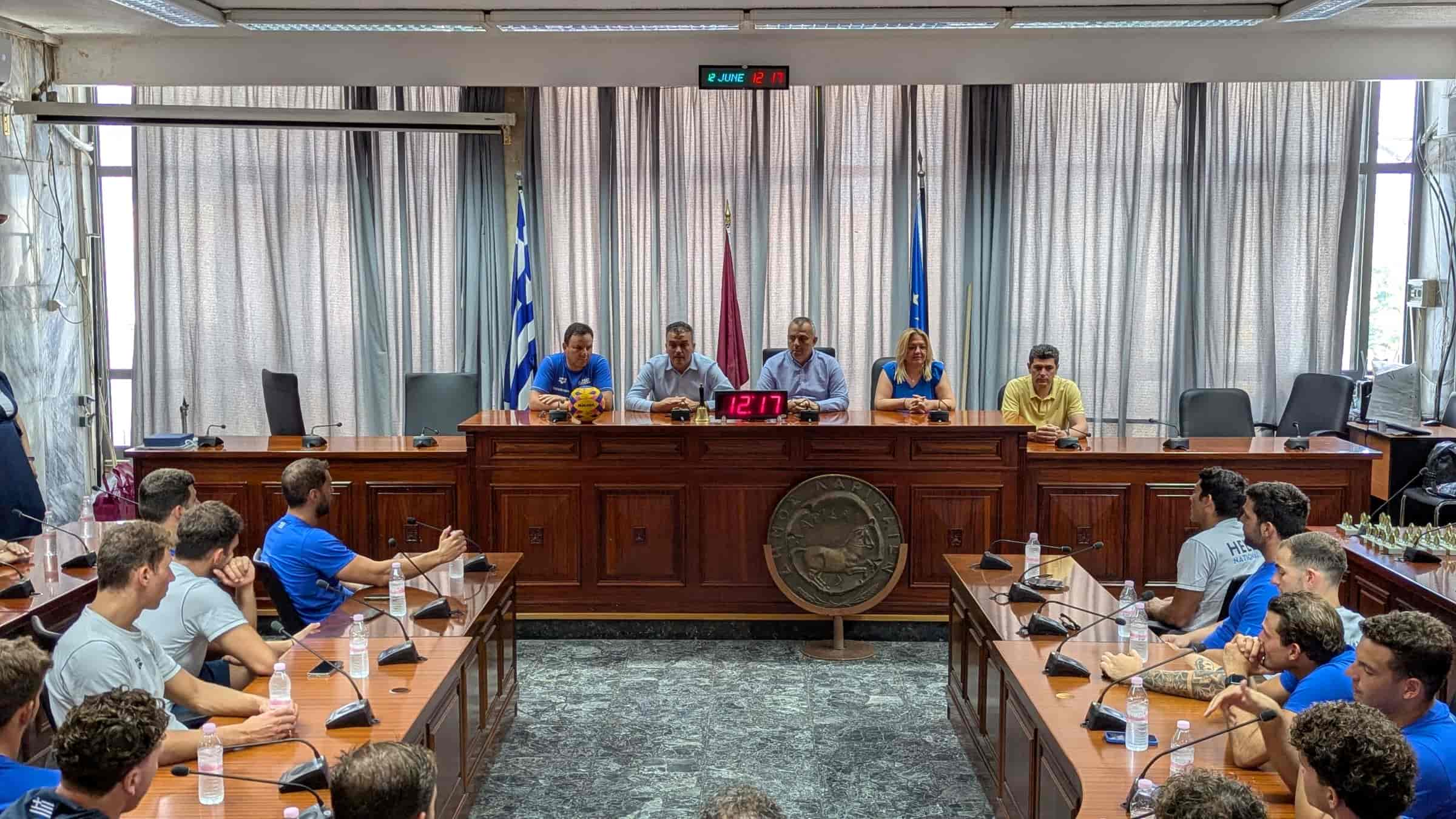 Ο Δήμος Λαρισαίων τίμησε τους αθλητές, τους προπονητές και τα στελέχη της Εθνικής Ομάδας Υδατοσφαίρισης και ανταλλάχθηκαν δώρα εθιμοτυπίας και αναμνηστικά.