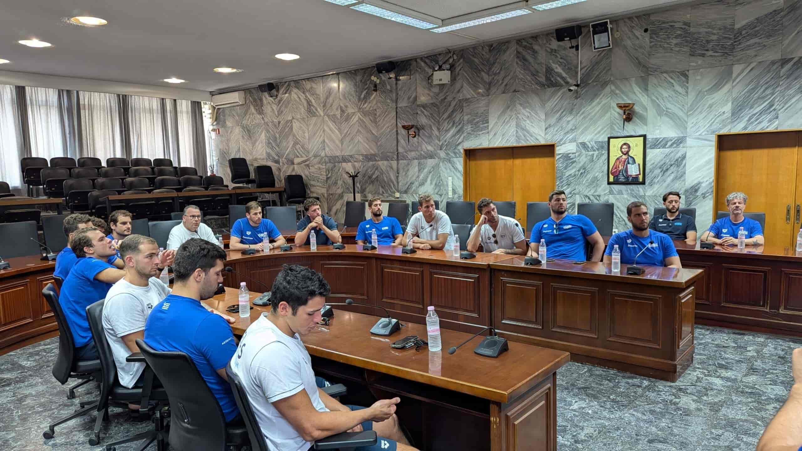 «Η Λάρισα βρίσκεται για ακόμη μία φορά στο επίκεντρο του διεθνούς αθλητικού ενδιαφέροντος. Έχουμε τη μεγάλη χαρά και τιμή να φιλοξενούμε την προετοιμασία δύο Εθνικών ομάδων υδατοσφαίρισης Ανδρών, τη δική μας, της Ελλάδας και της Ιταλίας, εν όψει της συμμετοχής τους στο Παγκόσμιο πρωτάθλημα της Σιγκαπούρης. Κάθε αθλητικό γεγονός στην πόλη μας είναι και μια ευκαιρία εξωστρέφειας, να δείξουμε στον κόσμο πόσο φιλόξενη και δραστήρια είναι η Λάρισα. Και αυτή η σχέση της πόλης με τον αθλητισμό μας σπρώχνει να βελτιωνόμαστε, σε επίπεδο Αυτοδιοίκησης, μας σπρώχνει να διεκδικούμε ακόμη περισσότερους πόρους για υποδομές και εγκαταστάσεις, μας ωθεί να θέλουμε να γινόμαστε καλύτεροι κάθε μέρα», σημείωσε, μεταξύ άλλων, ο κ.Μαμάκος, καλωσορίζοντας την ομάδα και τους συντελεστές, στην αίθουσα του Δημοτικού Συμβουλίου του Δήμου Λαρισαίων.