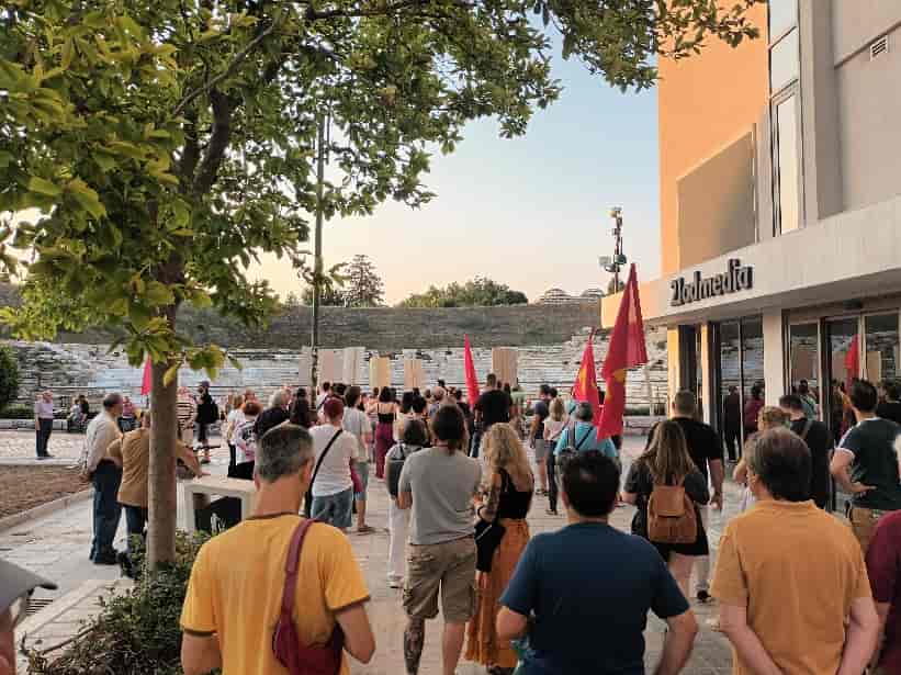 Το ραντεβού δόθηκε στην πλατεία Ταχυδρομείου στις 7:00 μμ όπου πραγματοποιήθηκε ομιλία από εκπρόσωπους του κόμματος, ενώ ακολούθησε πορεία με συνθήματα και παρεμβάσεις σε κεντρικά σημεία όπως στην οδό Κούμα και μπροστά από το Αρχαίο Θέατρο με αιτήματα: