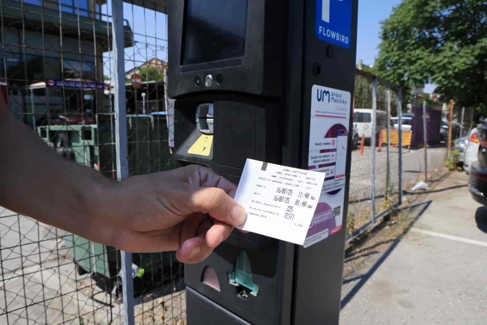 καθώς και όλη τη διαδικασία για έκδοση εισιτηρίου από το παρκόμετρο που