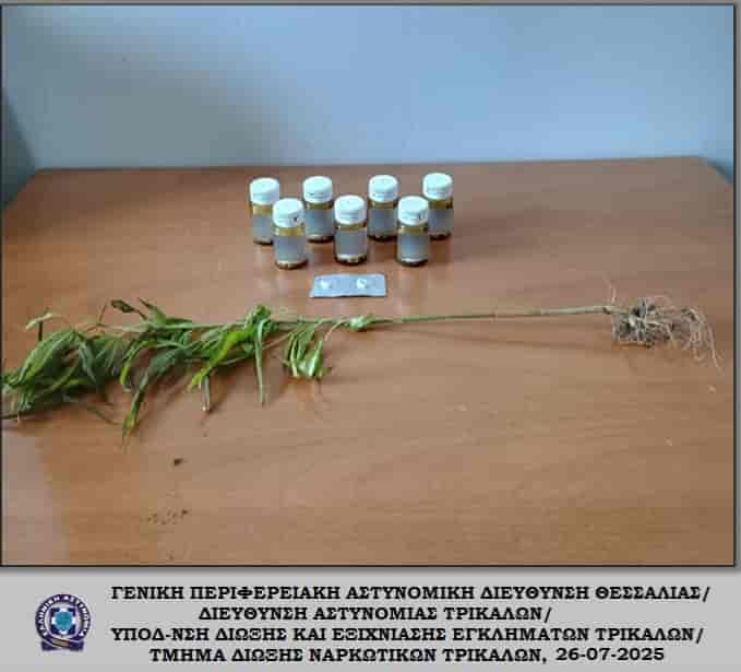 Συνελήφθη, χθες (25-07-2025) το μεσημέρι στην ευρύτερη περιοχή των Τρικάλων, από αστυνομικούς του Τμήματος Δίωξης Ναρκωτικών της Υποδιεύθυνσης Δίωξης και Εξιχνίασης Εγκλημάτων Τρικάλων, ένας ημεδαπός άνδρας, για παράβαση της νομοθεσίας περί ναρκωτικών.