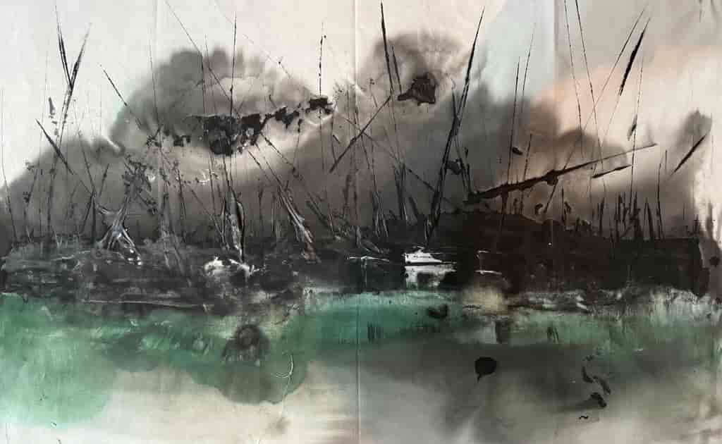 χρησιμοποιώντας κάρβουνο, μολύβι, λάδι και ακρυλικά. Η εικαστική του πορεία