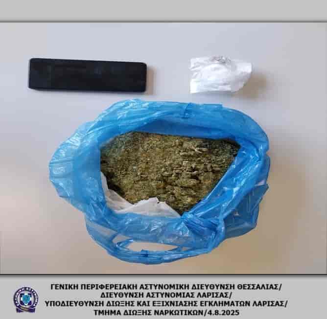 Συνελήφθη, σήμερα (04-08-2025) το πρωί στη Λάρισα, από αστυνομικούς του Τμήματος Δίωξης Ναρκωτικών της Υποδιεύθυνσης Δίωξης και Εξιχνίασης Εγκλημάτων Λάρισας, -1- ημεδαπός άνδρας, σε βάρος του οποίου σχηματίστηκε δικογραφία για παράβαση της νομοθεσίας περί ναρκωτικών.