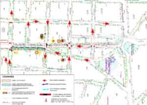 Κατά τη διάρκεια των εργασιών στην οδό Ανθίμου Γαζή, η κυκλοφορία των οχημάτων θα διεξάγεται σε μία λωρίδα κυκλοφορίας πλάτους 3,30 μ (τοπική μείωση των λωρίδων κυκλοφορίας από δύο σε μία, λόγω της στένωσης του οδοστρώματος στην αριστερή πλευρά της οδού κατά τη φορά κίνησης των οχημάτων από την οδό Αθανασίου Διάκου προς την οδό Κουμουνδούρου) και θα γίνεται σύμφωνα με τις προβλεπόμενες πληροφοριακές και ρυθμιστικές πινακίδες που θα τοποθετηθούν από τον ανάδοχο του έργου.
