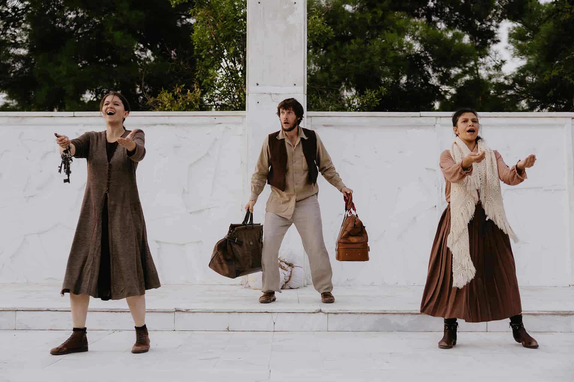 Σ’ ένα αέναο ταξίδι αναζήτησης του τόπου που ανήκουμε, εκεί που ο χωροχρόνος προκαλεί τη μνήμη και αποκαλύπτει αρχέγονα μηνύματα για την ανθρώπινη φύση, μας ταξίδεψε μεταφορικά και κυριολεκτικά χθες το απόγευμα η Ισπανική ομάδα θεάτρου Residui Teatro στην πρωτότυπη, παράσταση δρόμου CROSSING (ΔΙΑΣΧΙΖΟΝΤΑΣ) στον λόφο φρουρίου. Κοινό διαφορετικών ηλικιών, προσήλθε στο σημείο συνάντησης που είχε οριστεί από τους διοργανωτές, το Συνεργείο Μουσικού Θεάτρου και περπάτησε μαζί με τους ηθοποιούς-ταξιδιώτες διασχίζοντας με σύντομες στάσεις -κάτω από ένα δέντρο, ανάμεσα στις προτομές και τα μνημεία, δίπλα στις σκάλες του πάρκου- μία φανταστική διαδρομή που ξεδίπλωνε το βίωμα της αλλαγής, την αμηχανία του χρόνου, τη νοσταλγία του παλιού και τη φρίκη του βίαιου ξεριζωμού και του πολέμου με λόγια πολυγλωσσικά, σπαρακτικά ή ψιθυριστά και μελωδικές πολυφωνίες από τραγούδια της Μεσογείου. Μία συγκινητική, αιθέρια αισθητική και καλλιτεχνική παρέμβαση στον αστικό δημόσιο χώρο που σηματοδότησε την έναρξη του 12ου Φεστιβάλ Παραστατικών Τεχνών στη Λάρισα και μας προϊδεάζει για το ενδιαφέρον πρόγραμμα που θα ακολουθήσει έως και τις 21 Σεπτεμβρίου 2025.