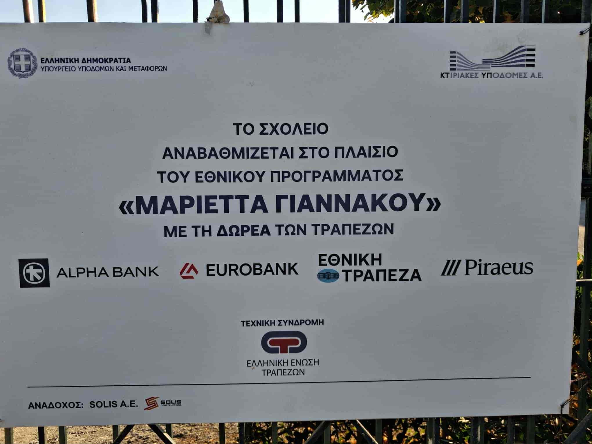 Ολοκληρώθηκε το έργο ανακαίνισης του σχολείου με το πρόγραμμα «Μαριέττα Γιαννάκου». Το πρόγραμμα είναι ένα έργο συνολικού ύψους 100 εκατ. ευρώ, τα οποία προέρχονται από τη δωρεά της Ελληνικής Ένωσης Τραπεζών, που αφορά παρεμβάσεις σε 426 σχολικές μονάδες, σε 245 Δήμους και στις 13 Περιφέρειες της χώρας.