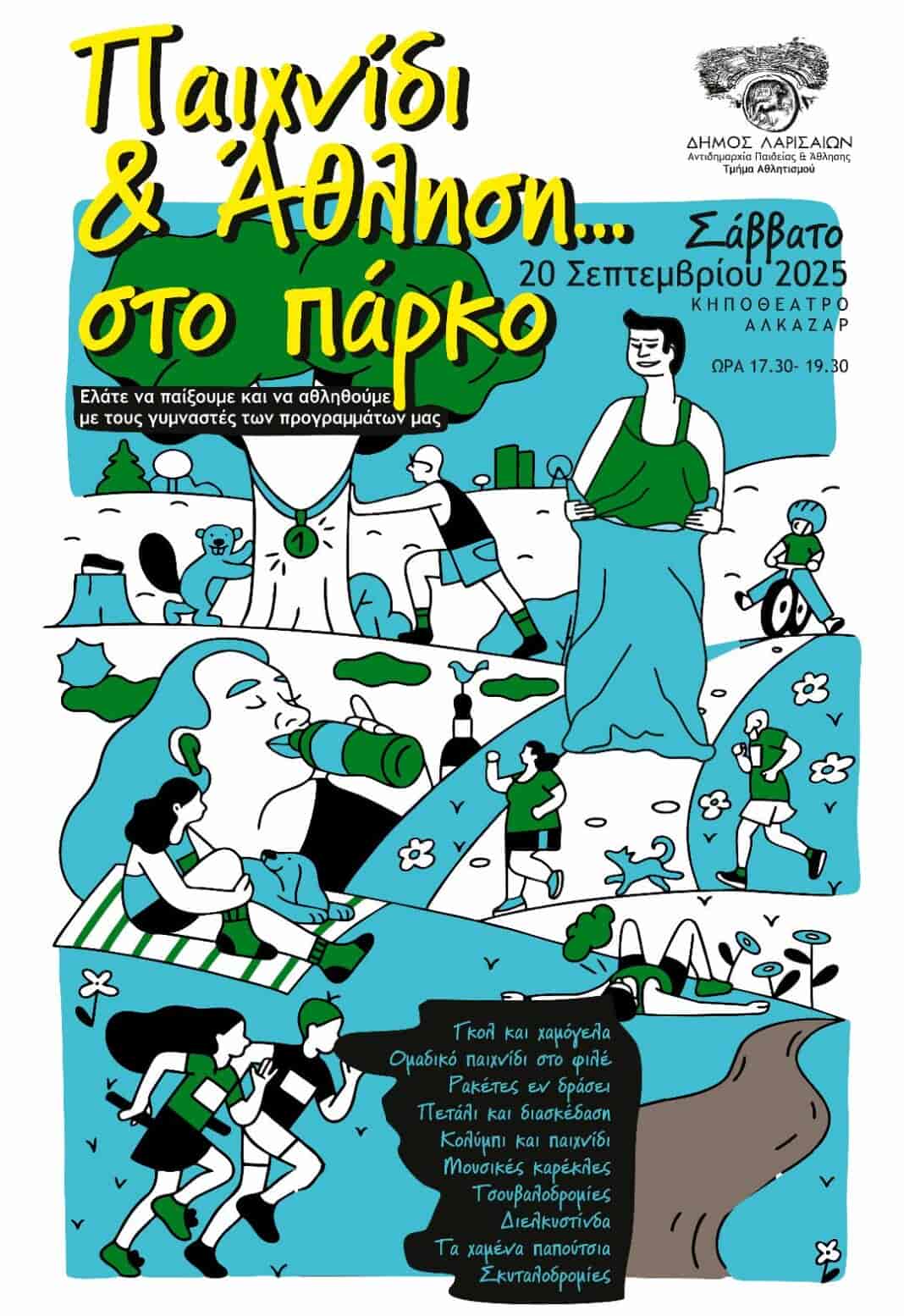 Το Τμήμα Αθλητισμού της Αντιδημαρχίας Παιδείας και Άθλησης Δήμου Λαρισαίων σας προσκαλεί σε μια όμορφη γιορτή γεμάτη παιχνίδι και άθληση, ανοιχτή σε όλους, μικρούς και μεγάλους, στο Κηποθέατρο Αλκαζάρ.