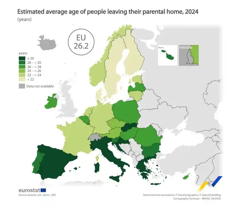 Σε μια περίοδο που το κόστος στέγασης αποτελεί αντικείμενο έντονου δημόσιου διαλόγου, τα στοιχεία δείχνουν ότι οι νέοι επηρεάζονται εντονότερα. Το 2024, το 9,7% των ατόμων ηλικίας 15–29 ετών στην Ε.Ε. ζούσε σε νοικοκυριά που διέθεταν το 40% ή και περισσότερο του διαθέσιμου εισοδήματός τους για στέγαση (δείκτης housing cost overburden), ενώ στο σύνολο του πληθυσμού το αντίστοιχο ποσοστό ήταν 8,2%.