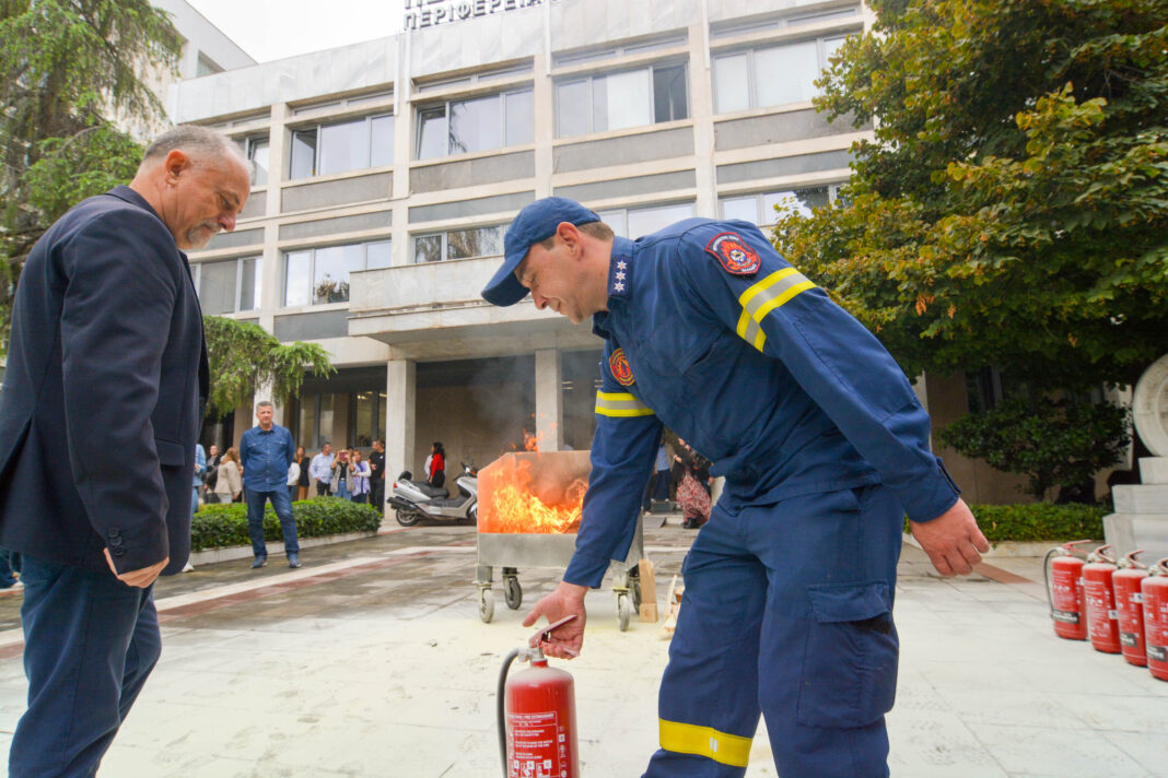 Με επιτυχία πραγματοποιήθηκε την Τετάρτη 1 Οκτωβρίου στο κτίριο του Διοικητηρίου της Περιφέρειας Θεσσαλίας (Κουμουνδούρου και Παπαναστασίου, Πλατεία Ρήγα Φεραίου), ενημερωτική δράση και επίδειξη χρήσης πυροσβεστικών μέσων, στο πλαίσιο της λήψης και εφαρμογής μέτρων πυρασφάλειας που οφείλει να λαμβάνει κάθε φορέας.