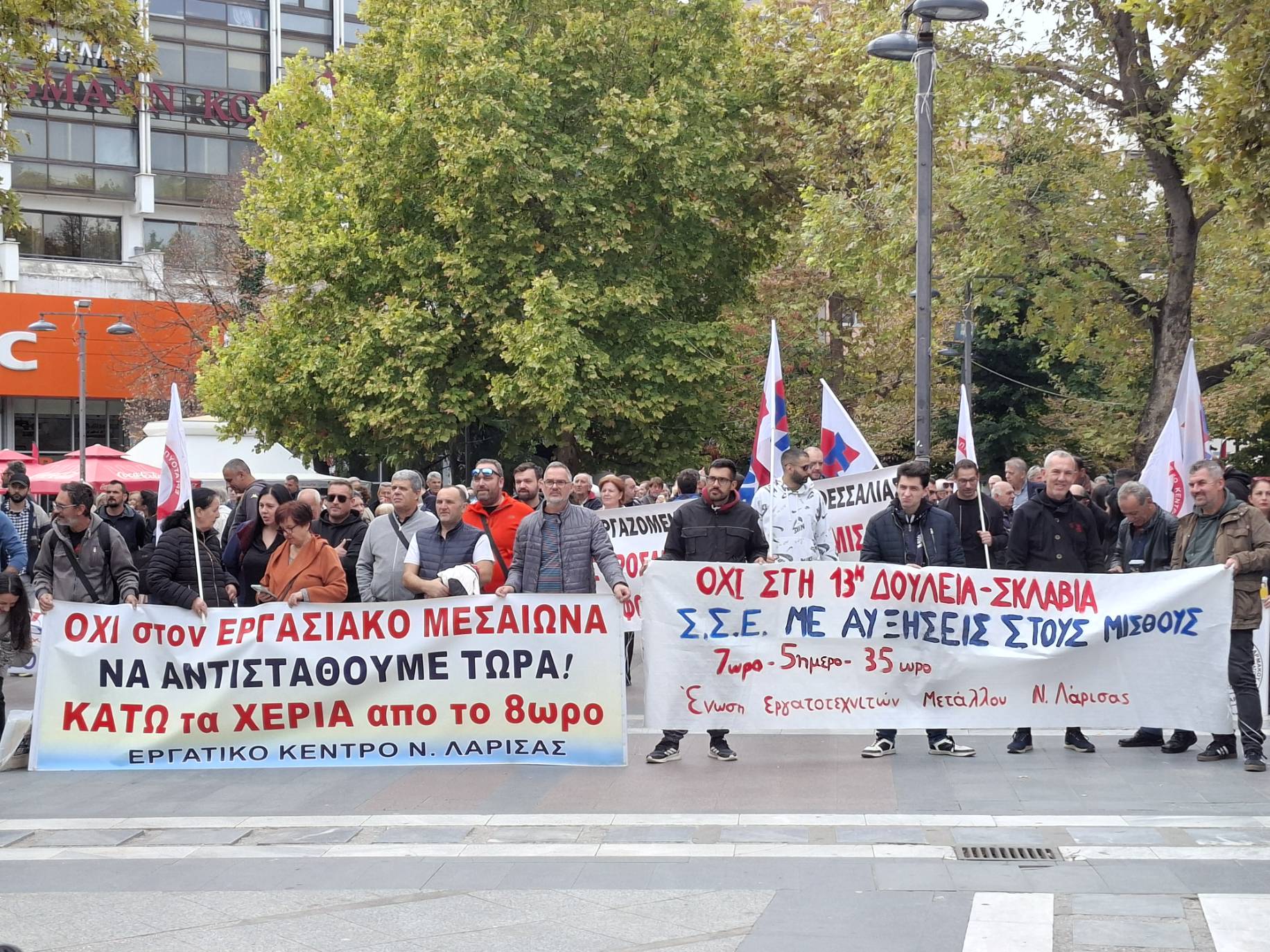 Με δεύτερη απεργιακή συγκέντρωση μόλις μέσα σε ένα μήνα απάντησαν οι Λαρισαίοι στην εφαρμογή του νέου νομοσχεδίου για το 13ωρο απαιτώντας καλύτερες και ανθρώπινες συνθήκες εργασίας στο πλαίσιο της 24ωρης πανελλαδικής απεργία.