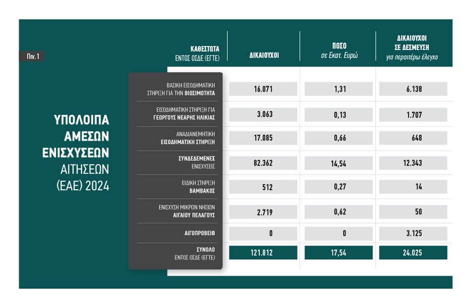Πίνακας 1: Στο πλαίσιο των ανωτέρω πληρωµών δεσµεύτηκαν οι δηλώσεις 24.025 δικαιούχων προκειµένου να γίνουν περαιτέρω έλεγχοι, κυρίως λόγω: