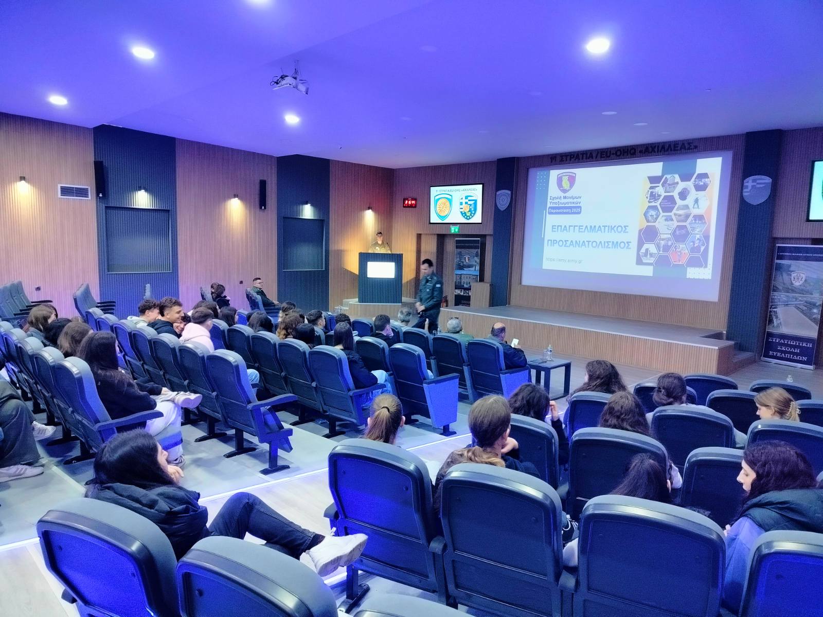 Την Τρίτη 21 Οκτωβρίου η Γ΄ τάξη του12ο ΓΕΛ Λάρισας στο πλαίσιο του επαγγελματικού προσανατολισμού, επισκέφτηκε την 1η ΣΤΡΑΤΙΑ/EU-OHQ και ενημερώθηκε από εκπροσώπους.