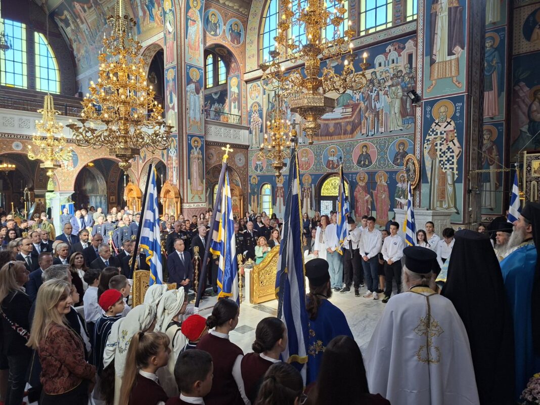 Στα πλαίσια του εορτασμού της Εθνικής Επετείου της 28ης Οκτωβρίου 1940 τελέστηκε επίσημη δοξολογία στον Ιερό Μητροπολιτικό Ναό του Αγ. Αχιλλίου, στην οποία χοροστάτησε ο Μητροπολίτης Λαρίσης και Τυρνάβου Σεβ. κ.κ. Ιερώνυμος.