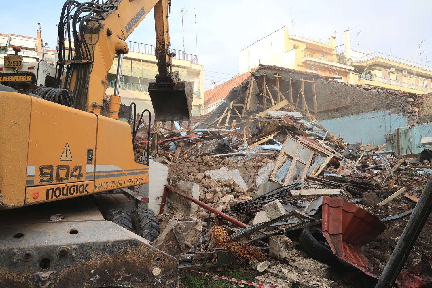 Με εντατικούς ρυθμούς συνεχίζεται το πρόγραμμα κατεδαφίσεων επικίνδυνων κτιρίων στην περιοχή ευθύνης του Δήμου Λαρισαίων, με παρέμβαση σε κτίριο επί της οδού Σκουφά, στη Λάρισα, που κατεδαφίστηκε χθες. Στο σημείο εκτέλεσης των εργασιών βρέθηκαν οι Αντιδήμαρχοι Τεχνικών Υπηρεσιών, κ.Χρήστος Τερζούδης και Πολεοδομίας, κ.Ανδρέας Ανδριτσόπουλος.