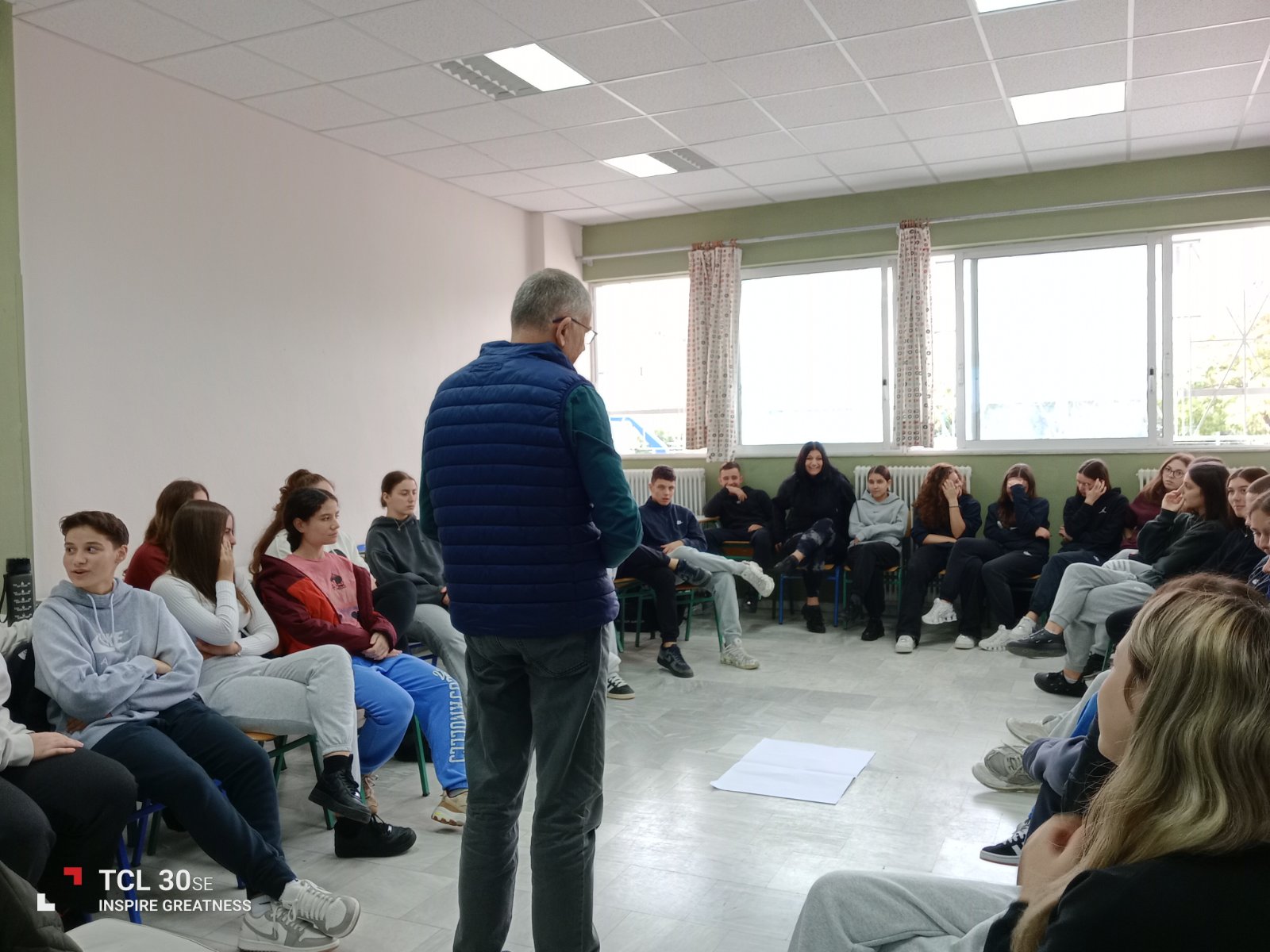 Την Πέμπτη 6 Νοεμβρίου 2025  ο εκπρόσωπος του Κέντρου Πρόληψης των εξαρτήσεων και Προαγωγής της Ψυχοκοινωνικής Υγείας Ορφέας – ΕΟΠΑΕ κ. Χρήστος Πιτσίλκας πραγματοποίησε βιωματικό εργαστήριο στους  μαθητές της Α΄ τάξης του σχολείου μας με θέμα «Ανάγκες μαθητών και εκπαιδευτικών μέσα στο σχολείο που ονειρεύομαι». Η ενημέρωση ολοκληρώθηκε με συζήτηση και ανταλλαγή απόψεων.