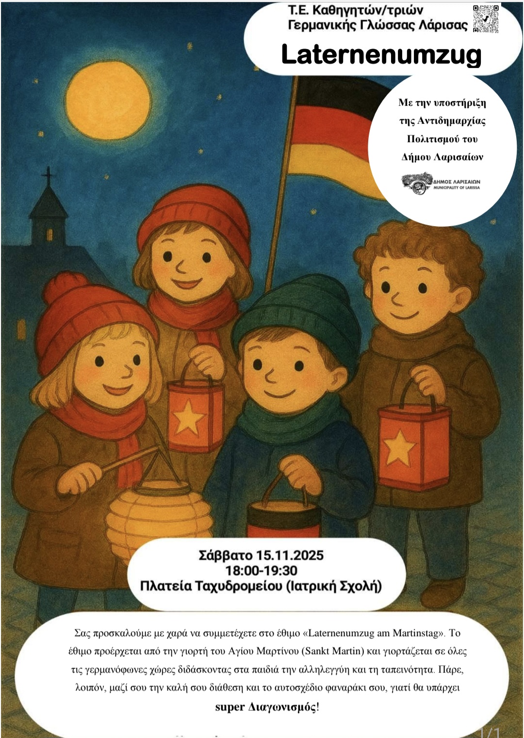 σας προσκαλεί για τρίτη συνεχόμενη χρονιά σε μία ατμοσφαιρική βραδινή πομπή με φαναράκια, το Martinszug 2025 ένα έθιμο που έρχεται από τις Γερμανόφωνες Χώρες και συνδυάζει πολιτισμό, γλώσσα και παιδική δημιουργικότητα.