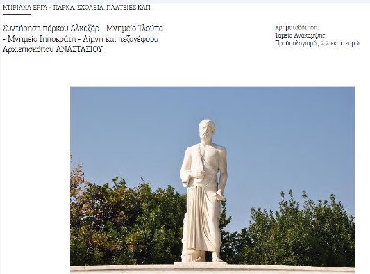 Θέλω να επισημάνω με τούτα, ότι η πόλη άνοιξε δρόμους  με συνέργειες, σε δύσκολους καιρούς, με περιοριστικές πολιτικές για την αυτοδιοίκηση. Ο απόηχος αυτών των συνεργειών ξεπέρασε τα όρια της πόλης, όπως με τις ετήσιες εκδηλώσεις για τον Ιπποκράτη, άμεσα συνδεδεμένες με το έργο που εγκαινιάζεται σήμερα, μας έφερε σε επαφή με προσωπικότητες και φορείς διεθνούς κύρους.