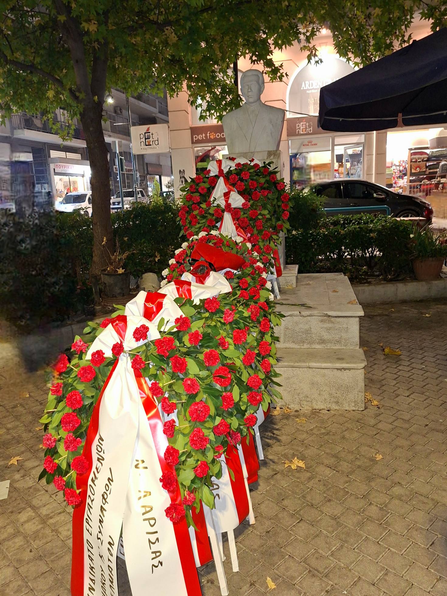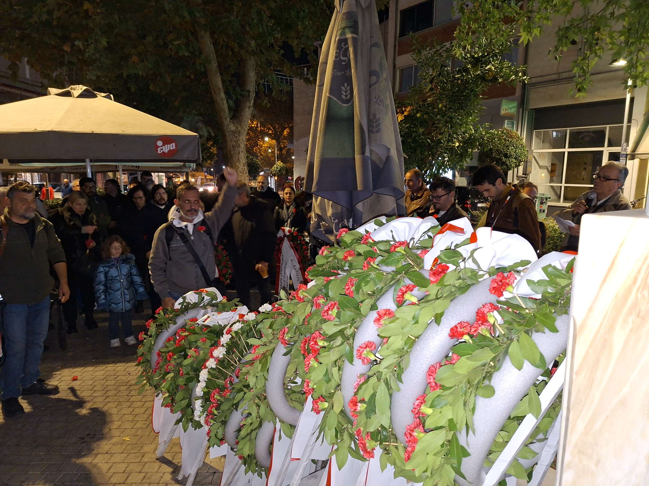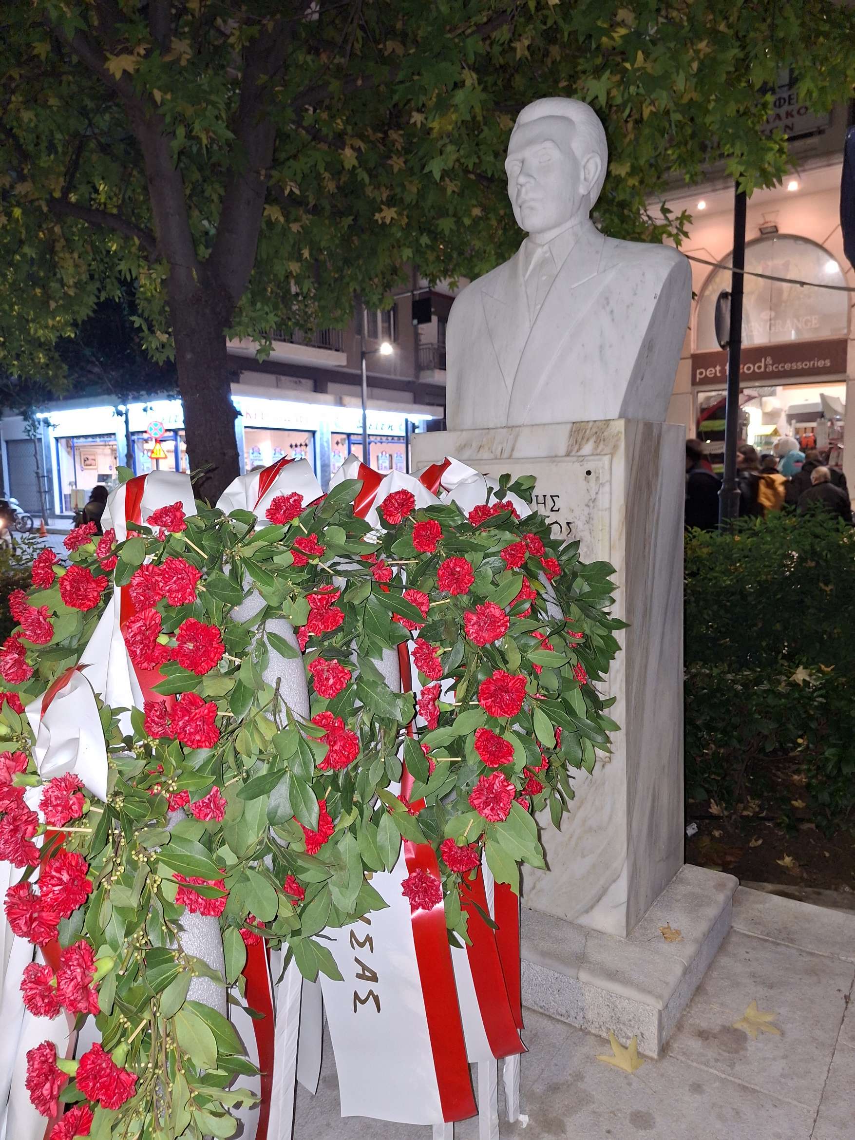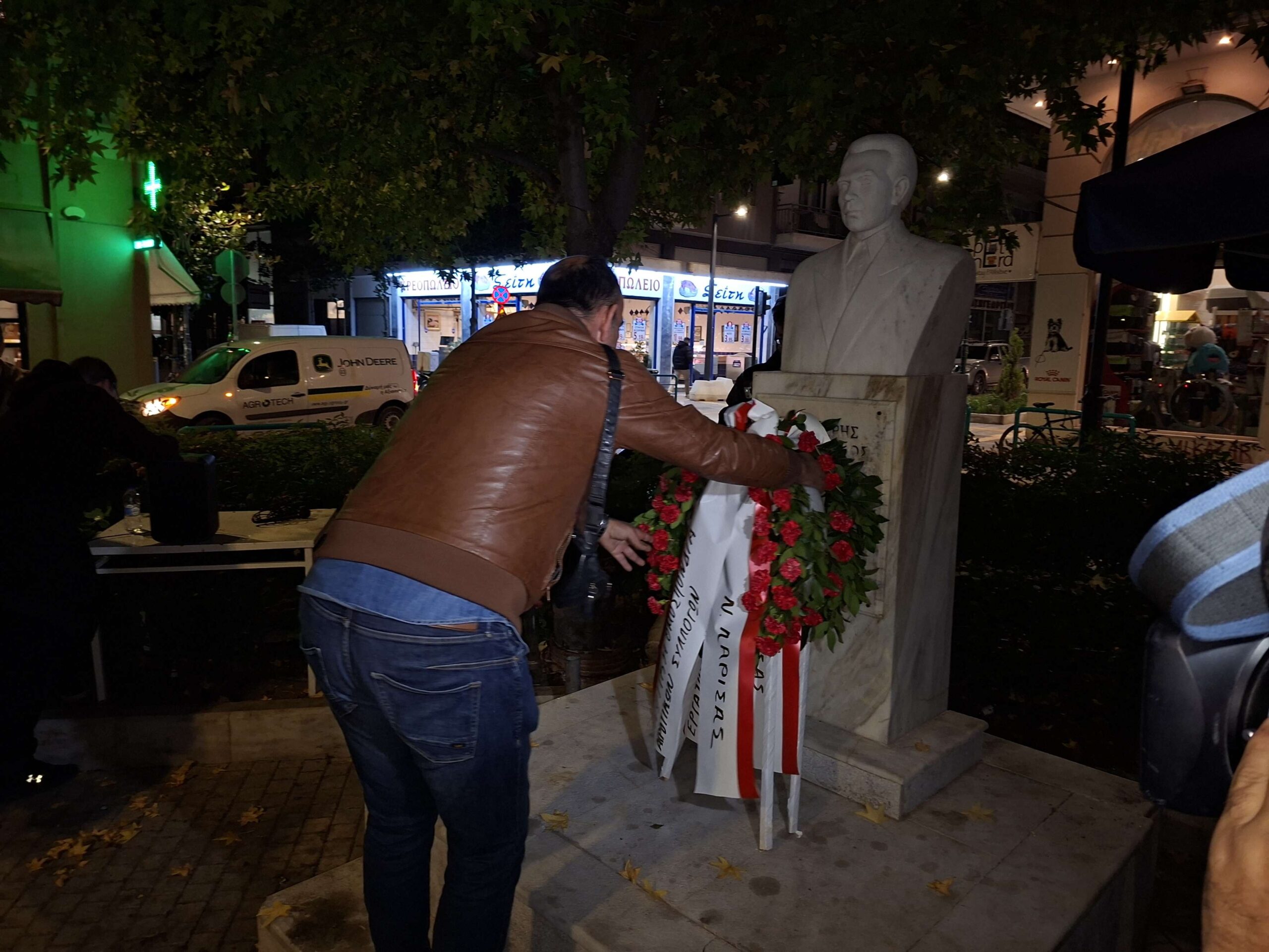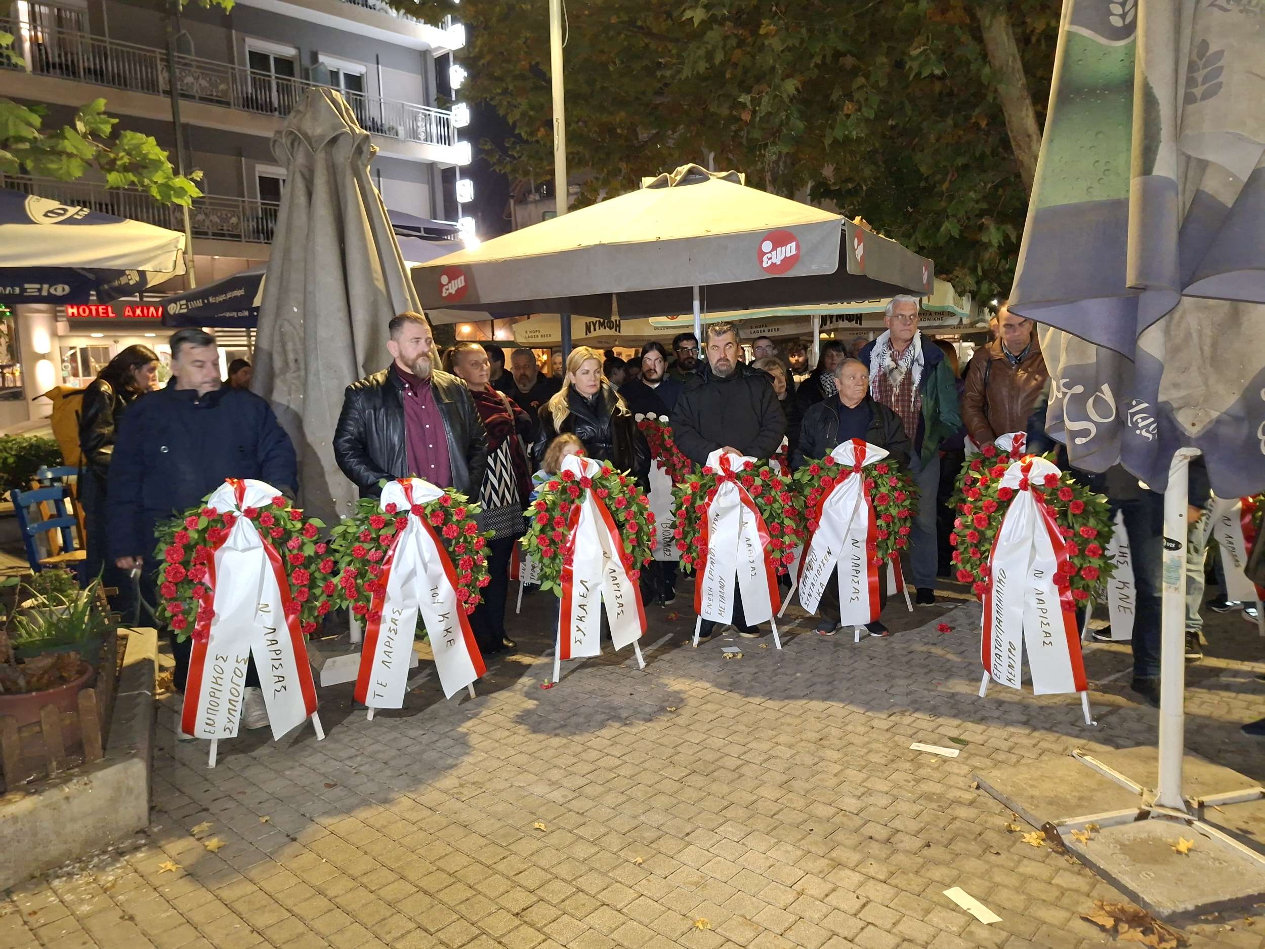 Κατάθεση στεφάνων πραγματοποίησε το Εργατικό Κέντρο Λάρισας, το απόγευμα της Δευτέρας, στην πλατεία Τάκη Γαργαλιάνου, για τον εορτασμό της 52ης επετείου του Πολυτεχνείου.