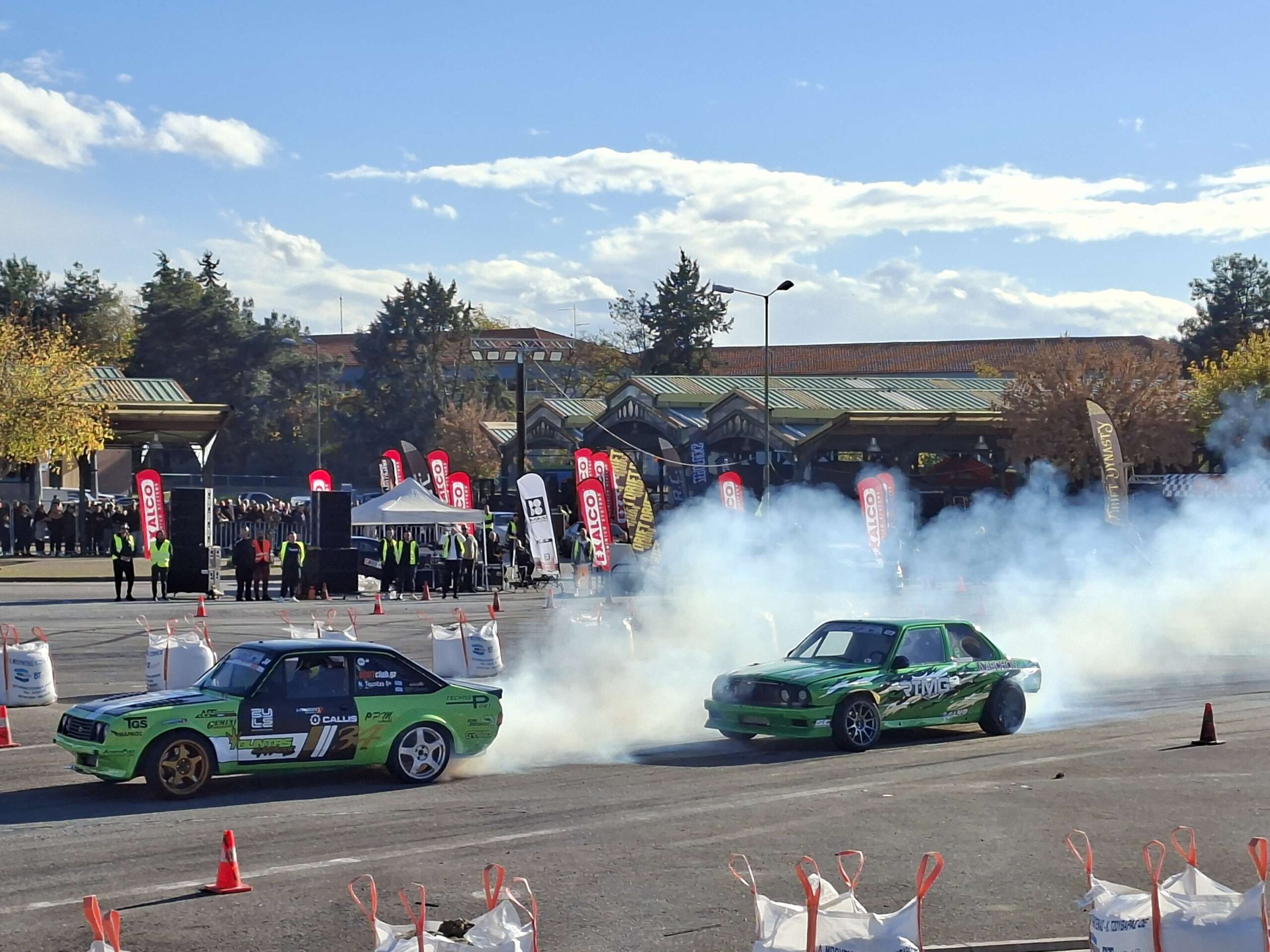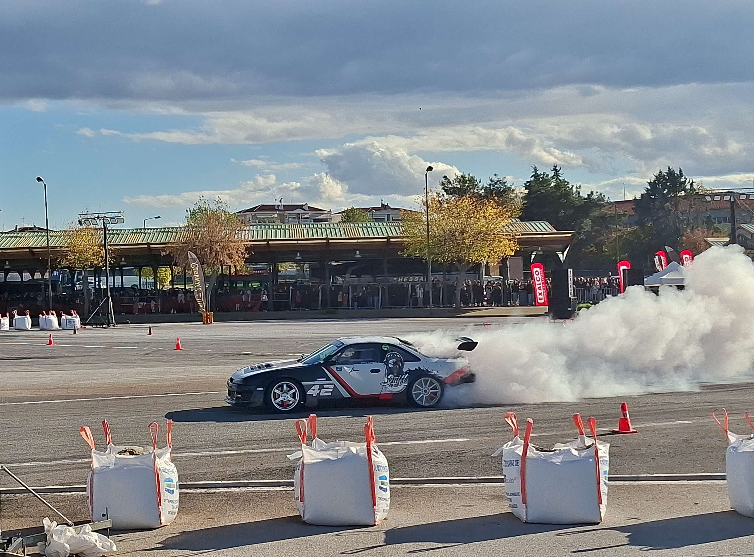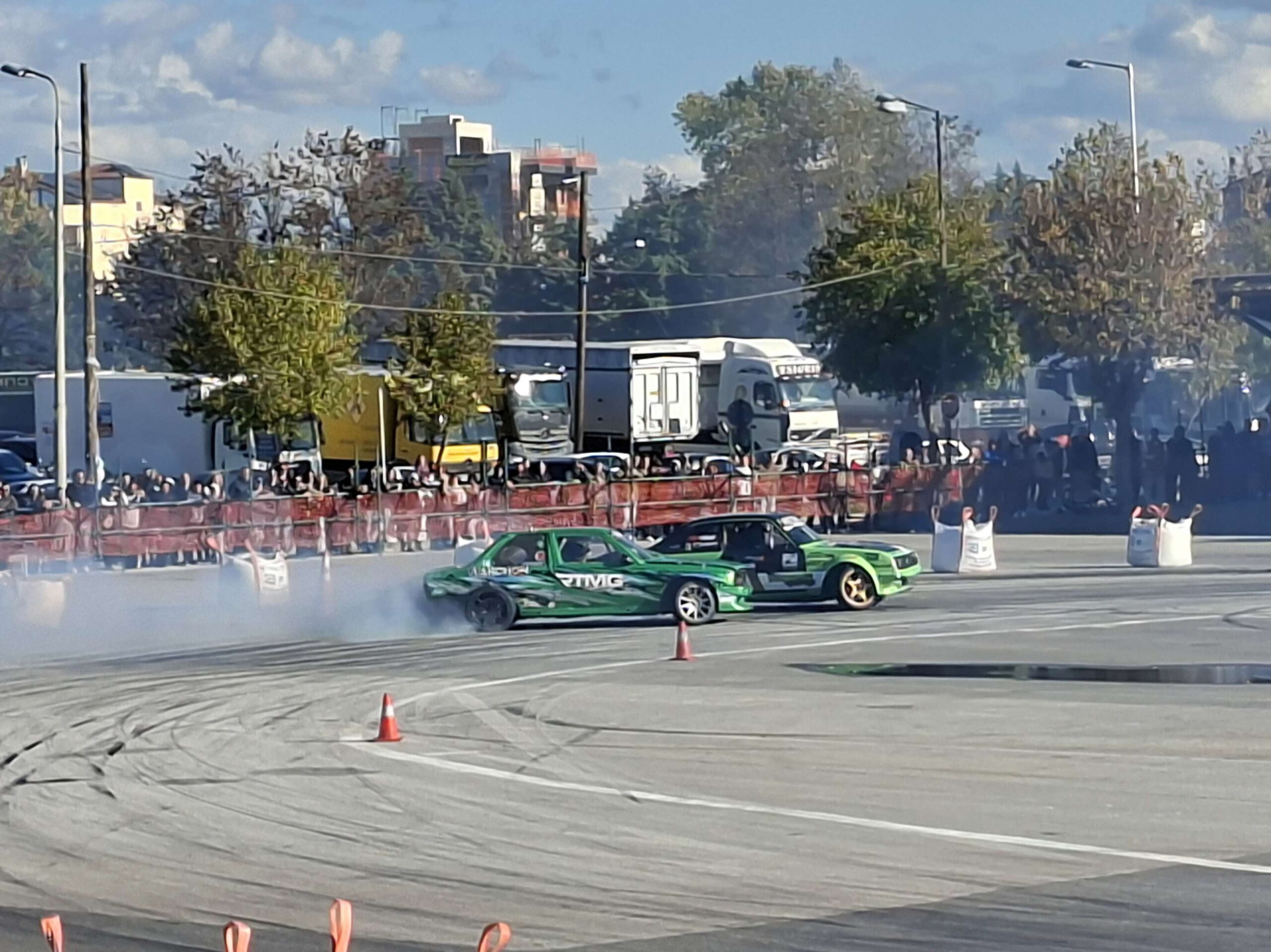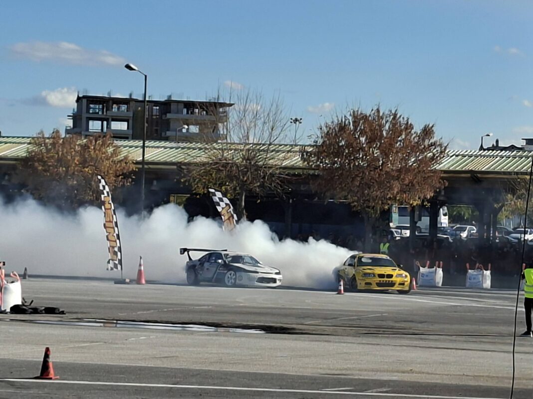 Με την έντονη μυρωδιά του καμένου ελαστικού συνεχίστηκε για την δεύτερη και τελευταία μέρα το Super Drift Λάρισας στην Σκεπαστή αγορά της Νεάπολης.