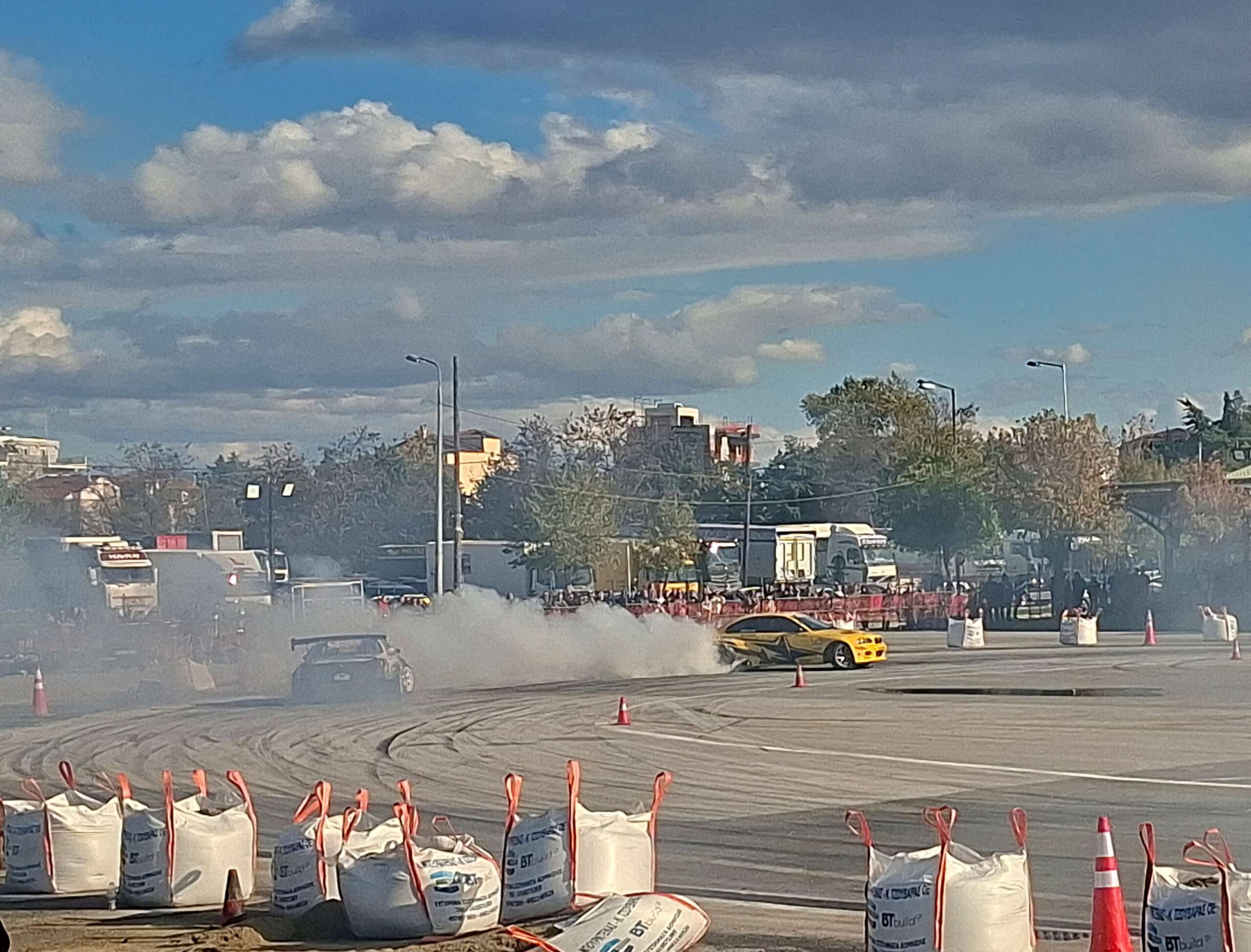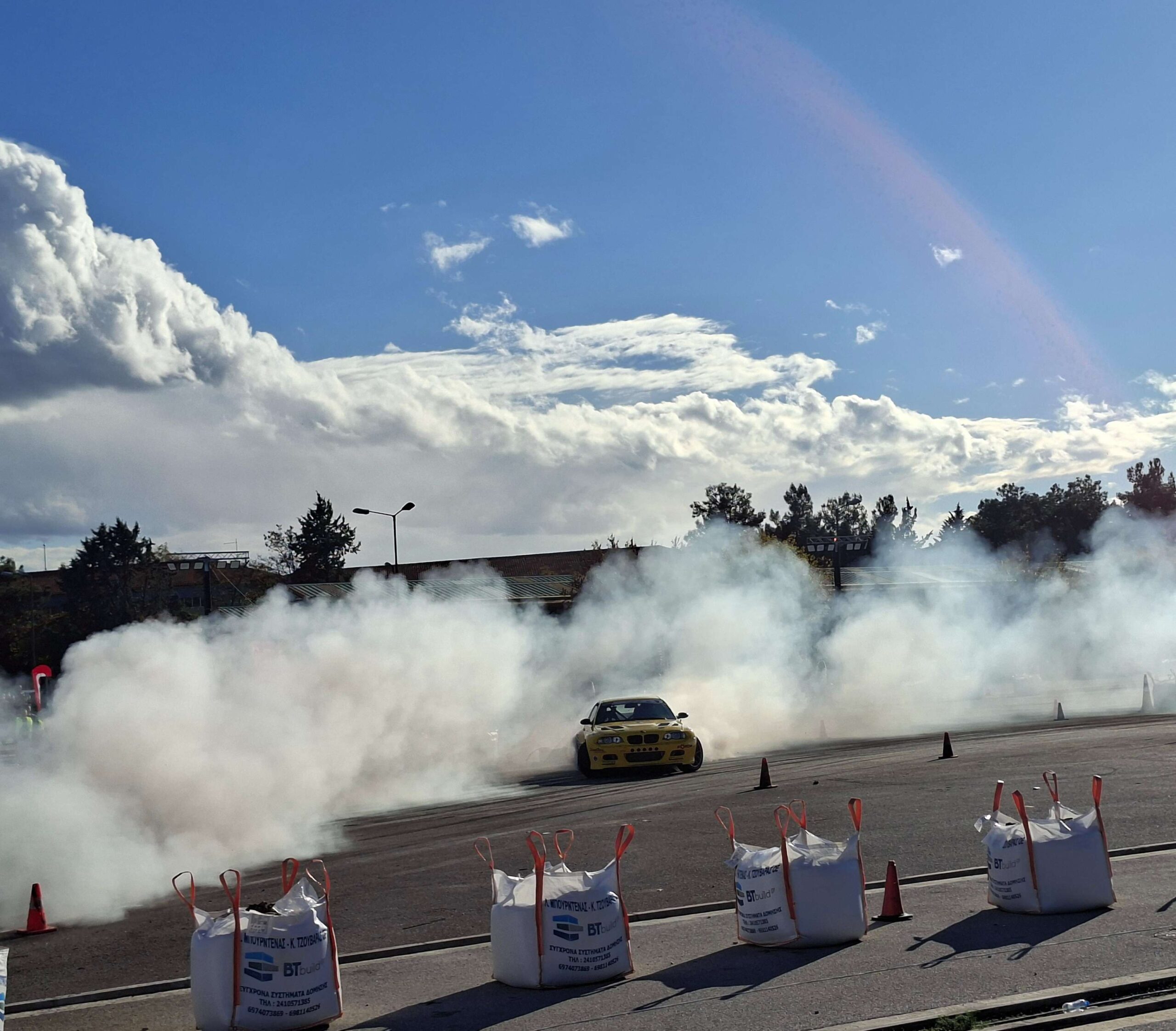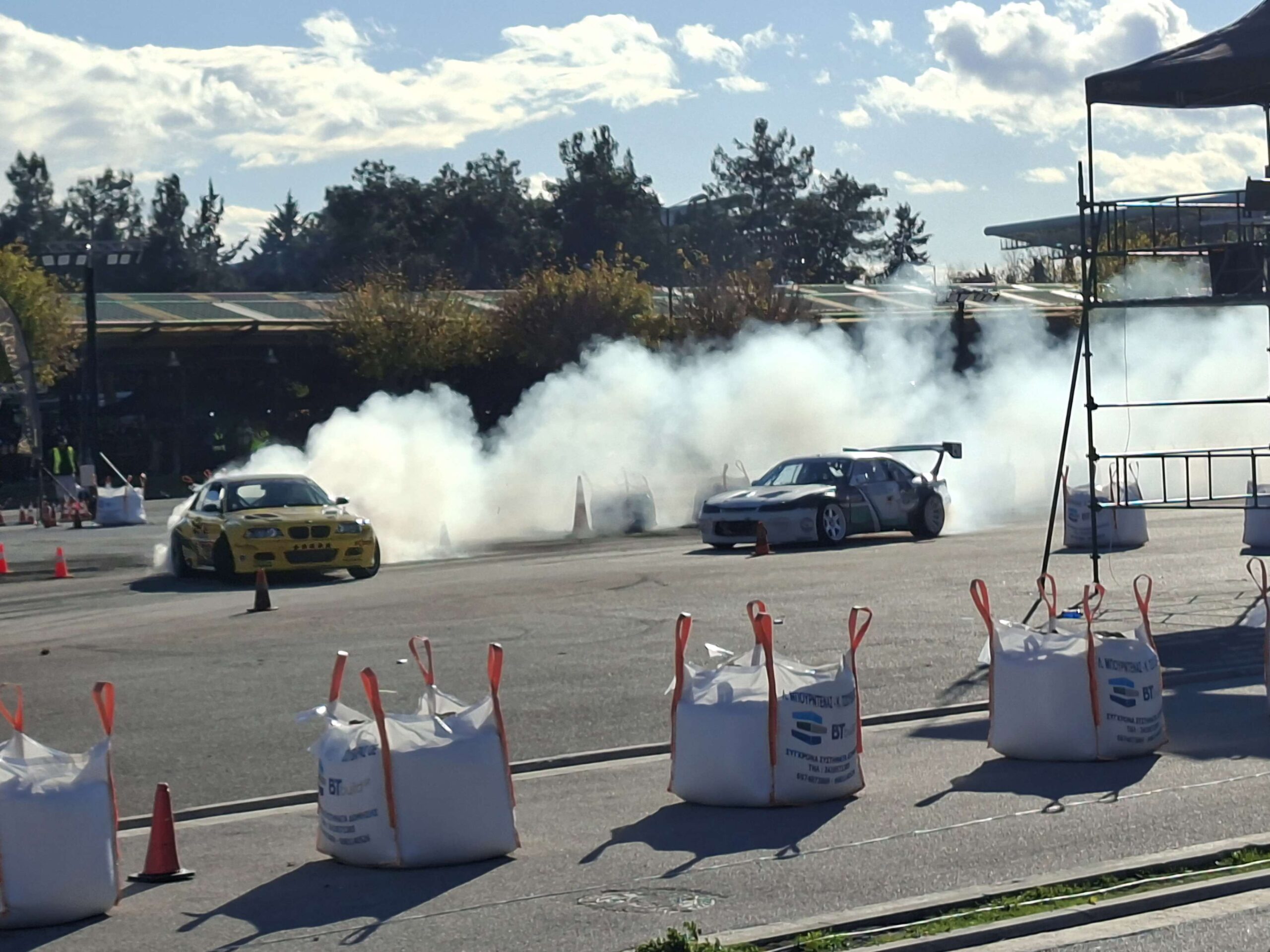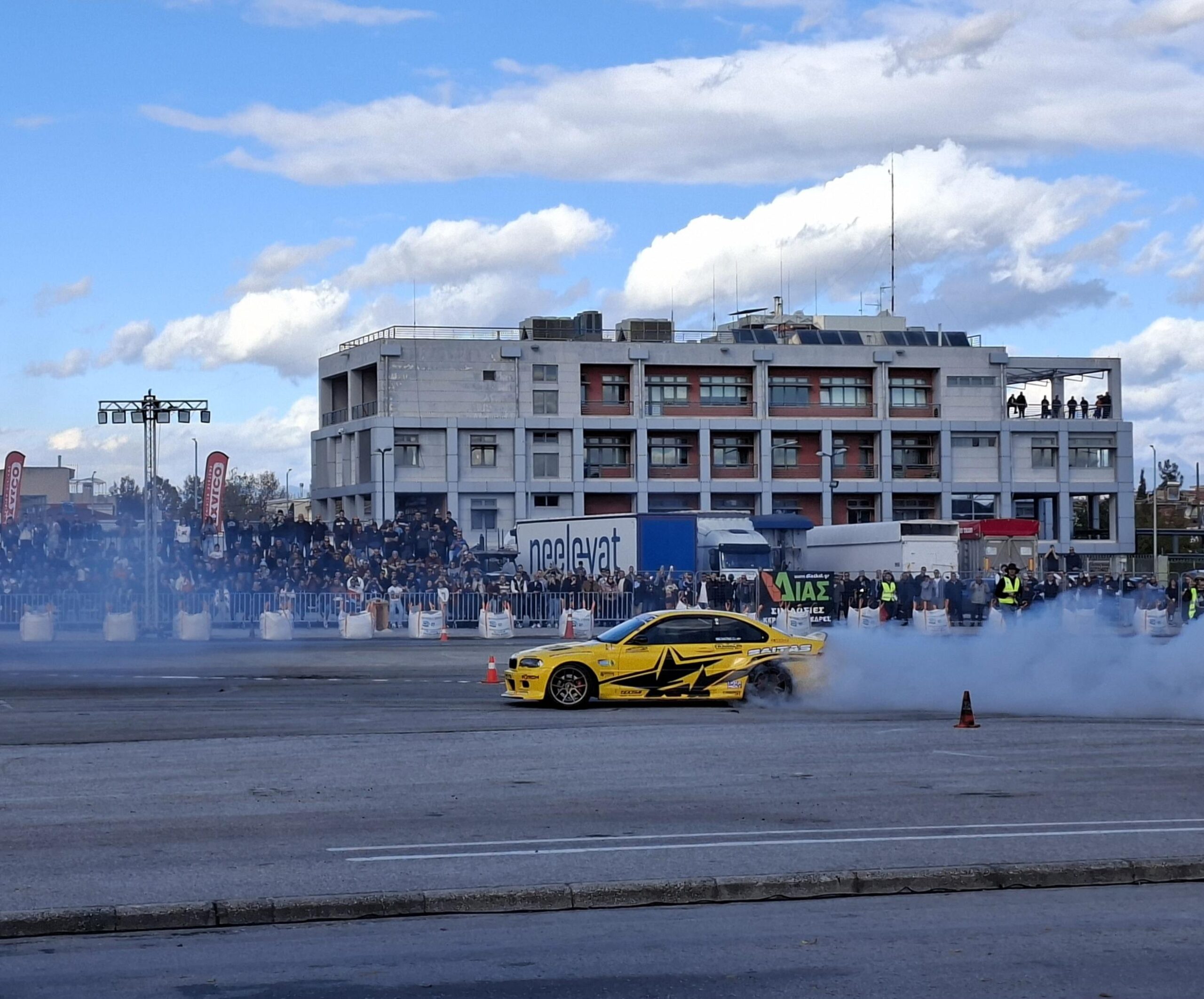 Με την έντονη μυρωδιά του καμένου ελαστικού συνεχίστηκε για την δεύτερη και τελευταία μέρα το Super Drift Λάρισας στην Σκεπαστή αγορά της Νεάπολης.