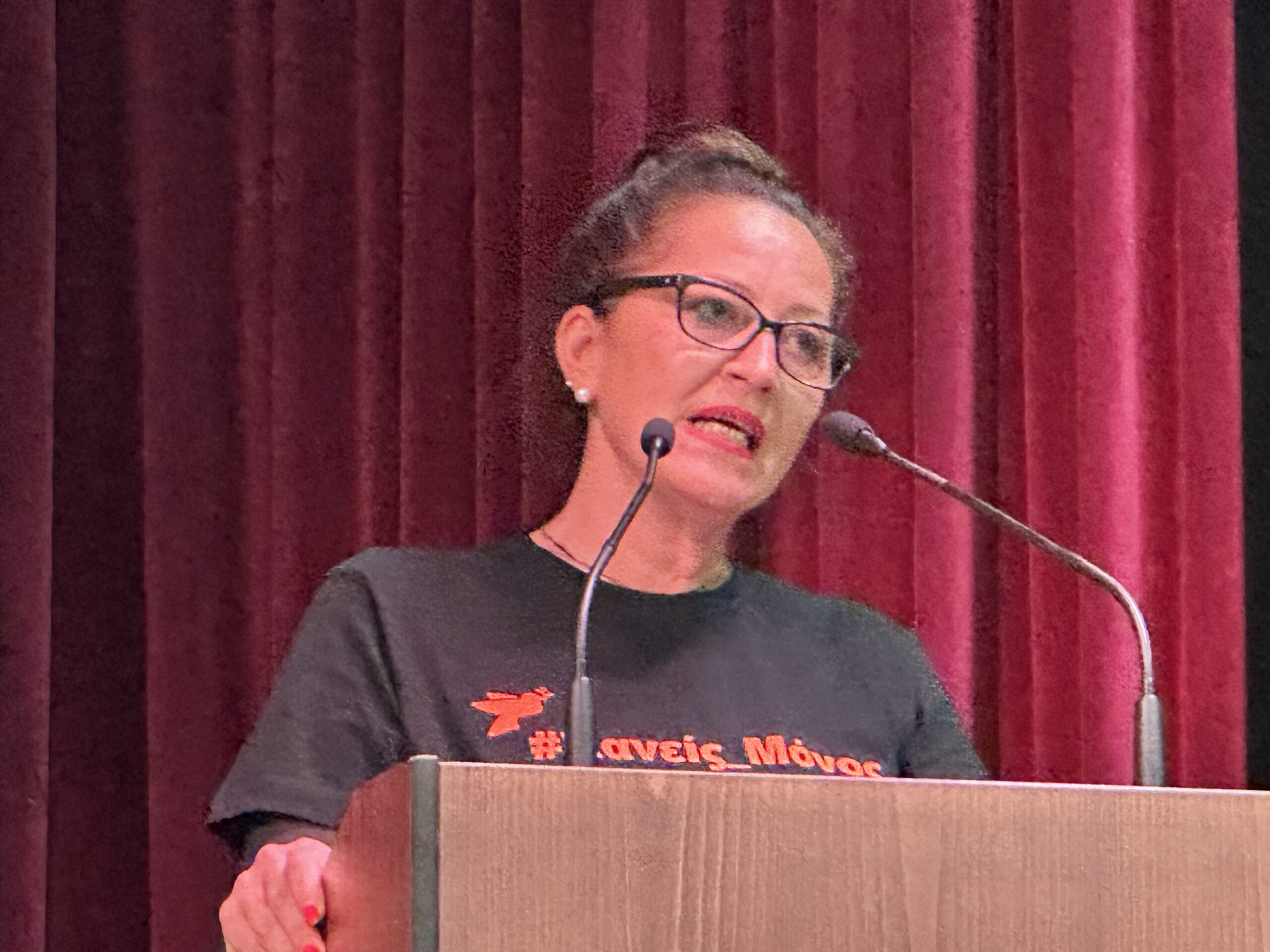 Τη συζήτηση συντόνισε και παρουσίασε η Γεωργία Σβάρνα, Αντιπρόεδρος του Δικτύου «Κανείς_Μόνος», ανοίγοντας έναν ζωντανό διάλογο με το κοινό και δίνοντας τον τόνο της βραδιάς με τη φράση-σύνθημα : μηδενική ανοχή στη βία – καμία γυναίκα στη σιωπή.