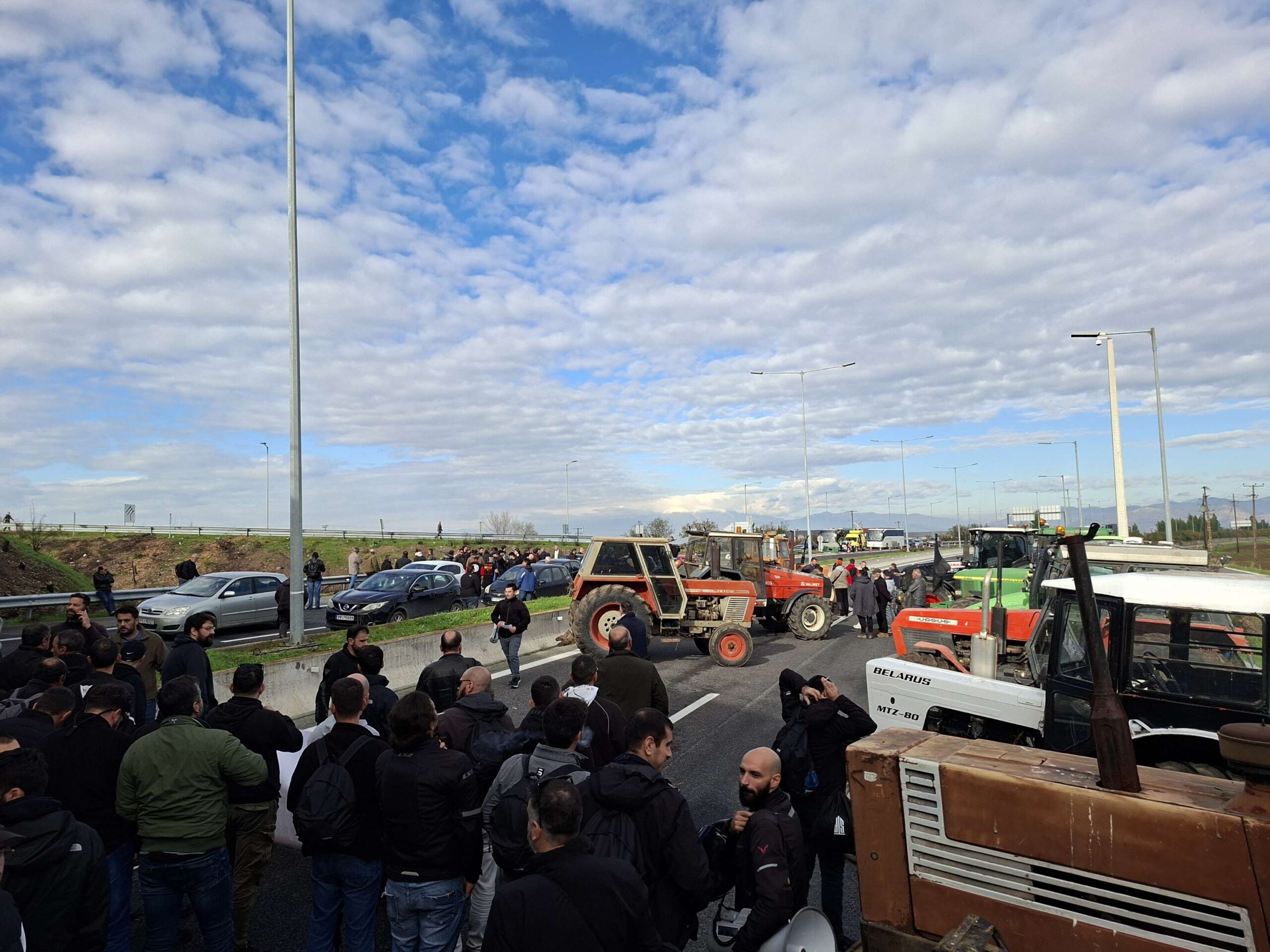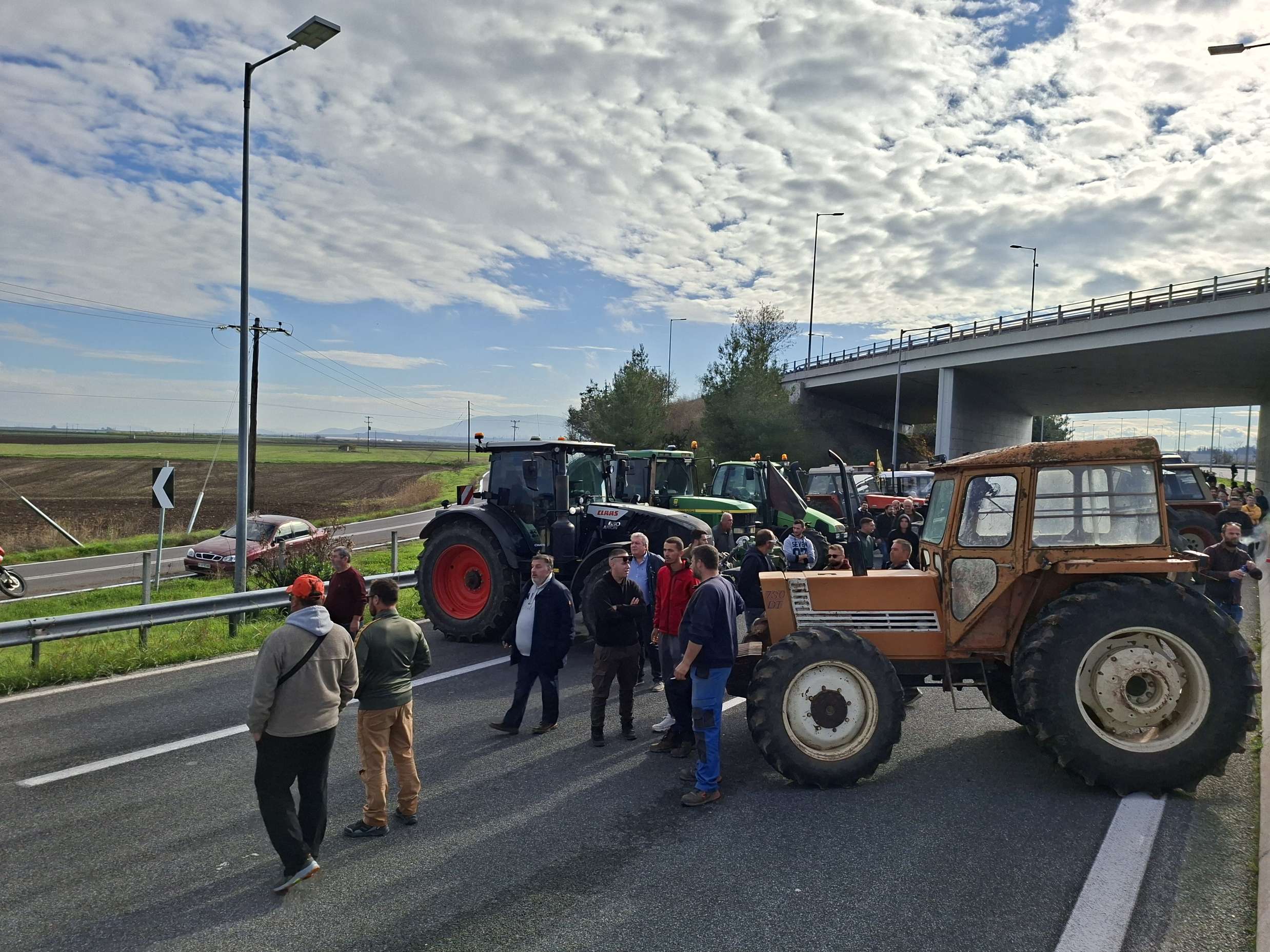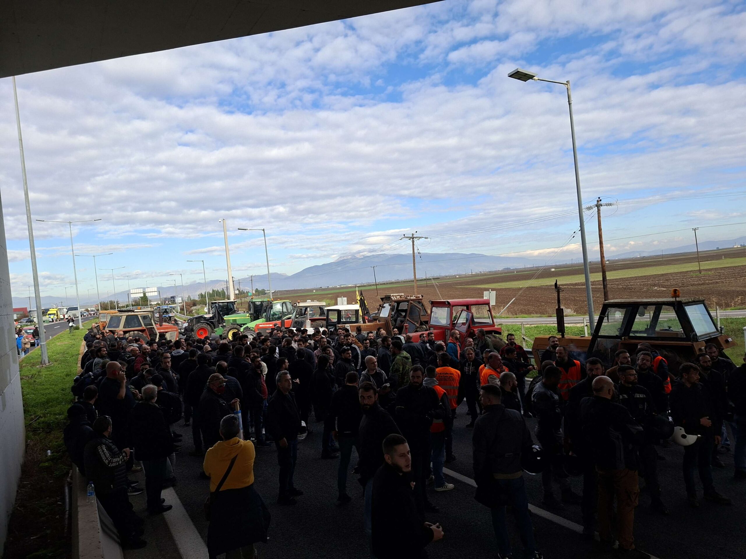 Με μια καταδρομική επέμβαση οι αγρότες της Λάρισας ανέβηκαν με τα τρακτέρ πάνω στην εθνική οδό και απέκλεισαν το δρόμο και από τα δύο ρεύματα στο ύψος του κόμβου της Νίκαιας.